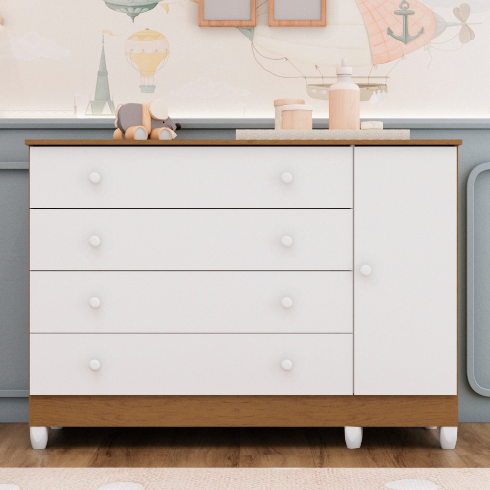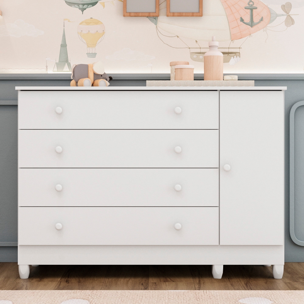 Cômoda 4 Gavetas com Porta Fraldário MDF Taís Carolina Baby