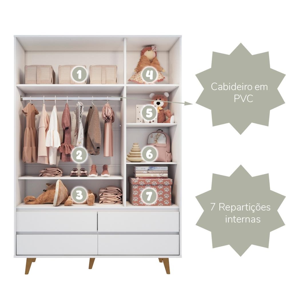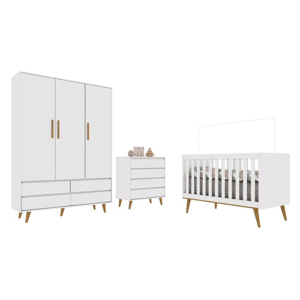Quarto Bebê Completo Berço Americano 3Em1 Cômoda Infantil Guarda Roupa 3 Portas 100% MDF
