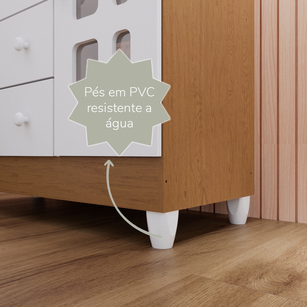 Cômoda Infantil 4 Gavetas com Porta Fraldário Ariel 100% MDF Branco Bétula