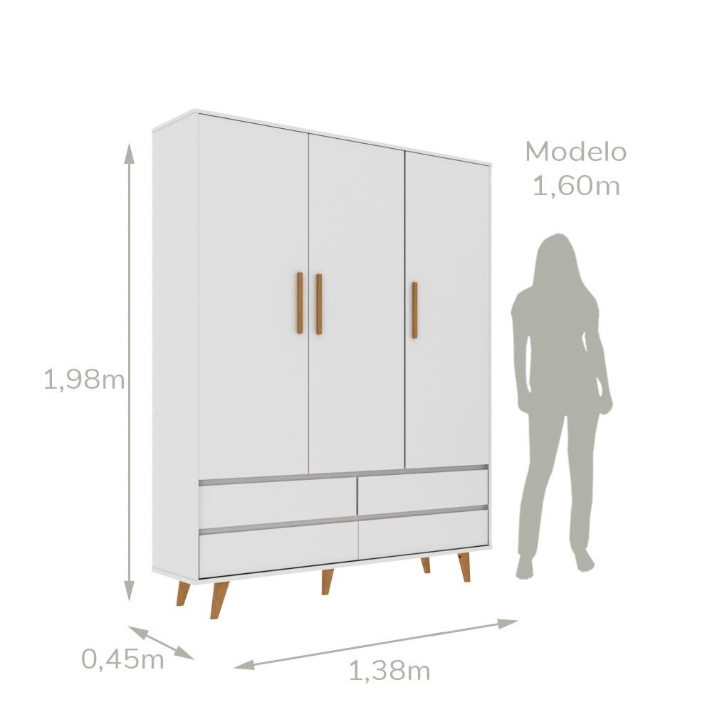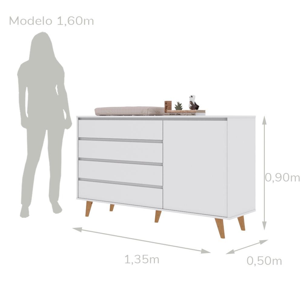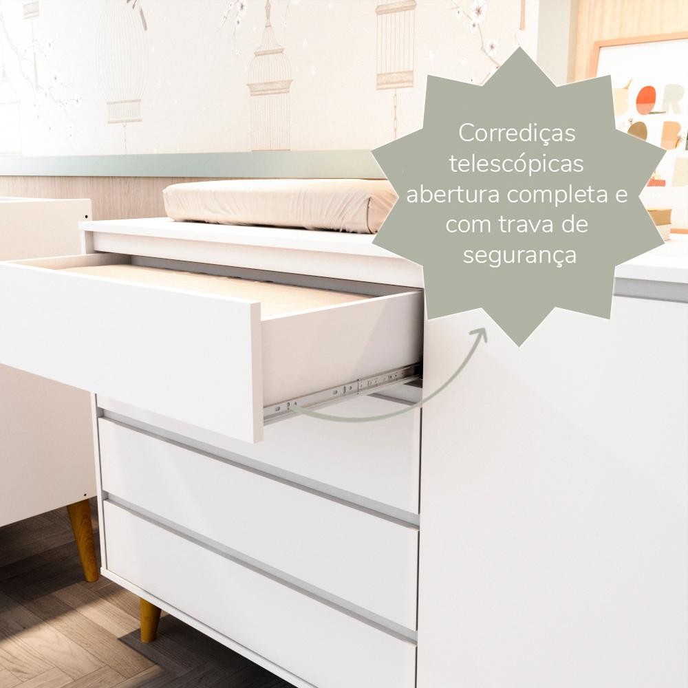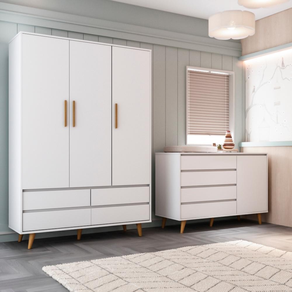 Quarto de Bebê Retrô Gran Lorena Cômoda com Porta + Guarda-Roupa 3 Portas Branco Carolina Baby