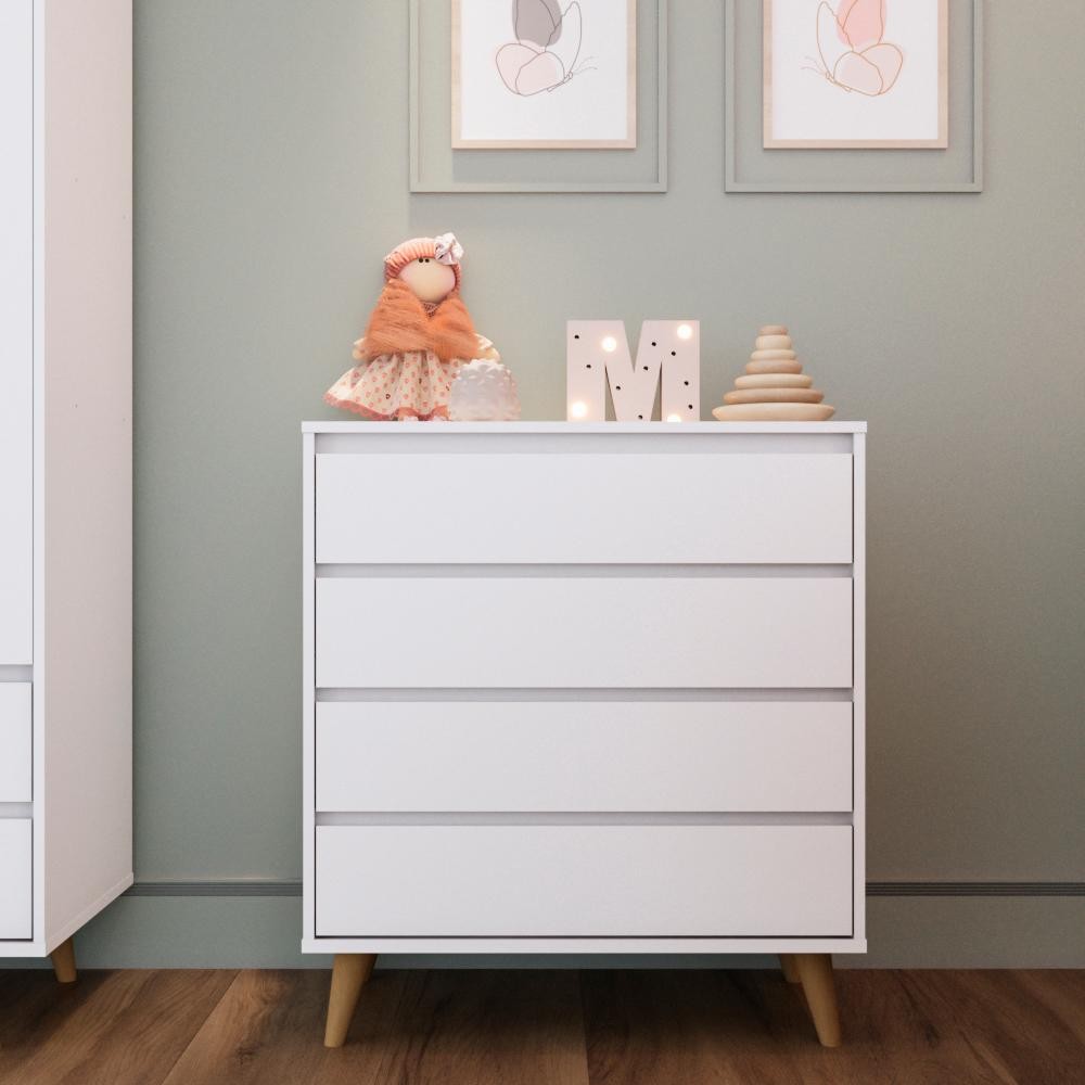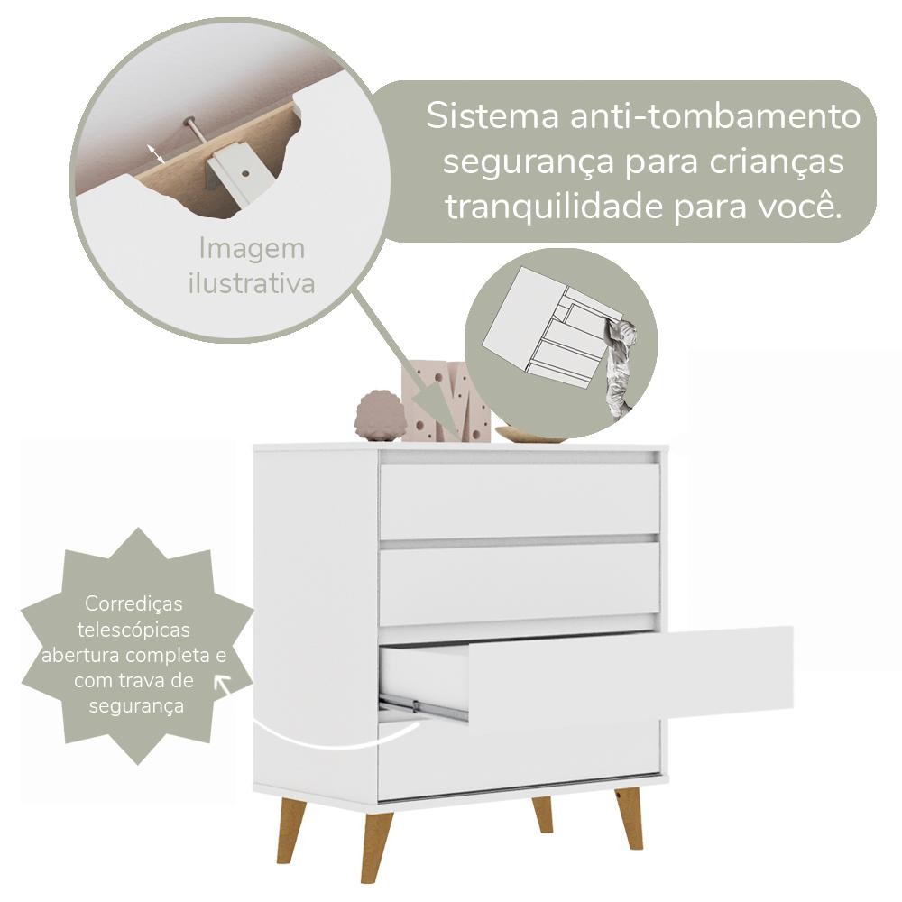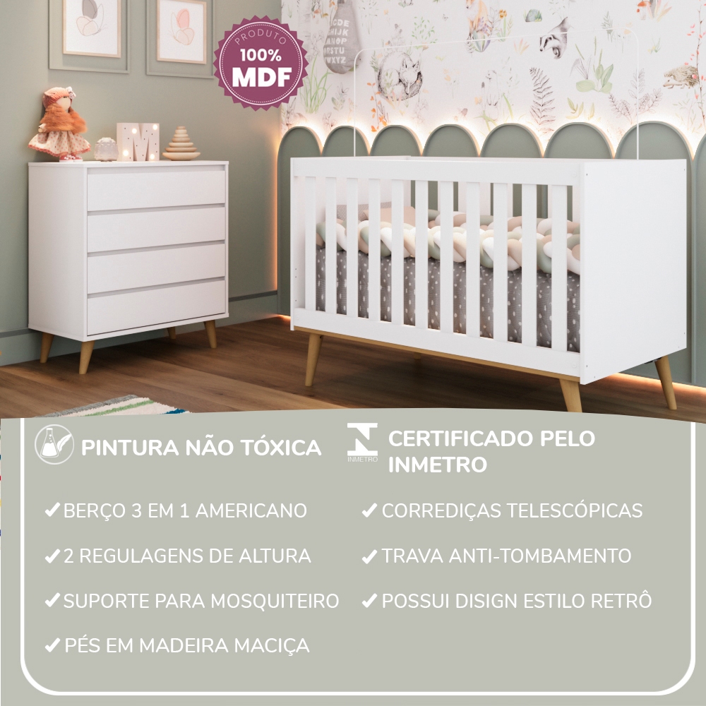 Quarto Bebê Completo Lorena Berço Americano 3Em1 Ludmila Cômoda 4 Gavetas 100% MDF