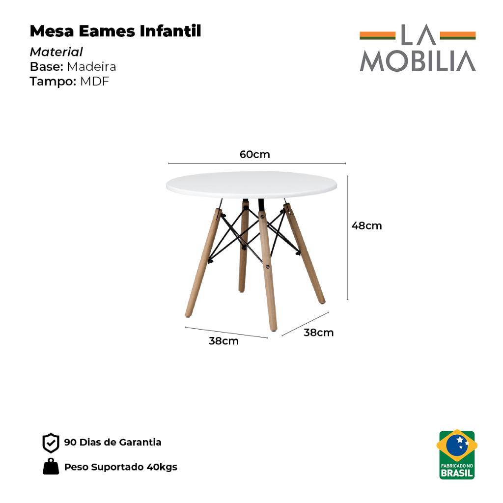 Mesa Infantil Eames Tampo Redondo 60cm - Cores