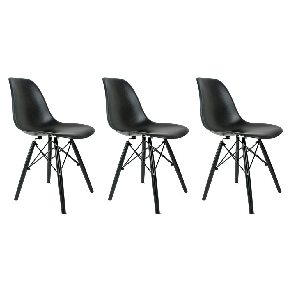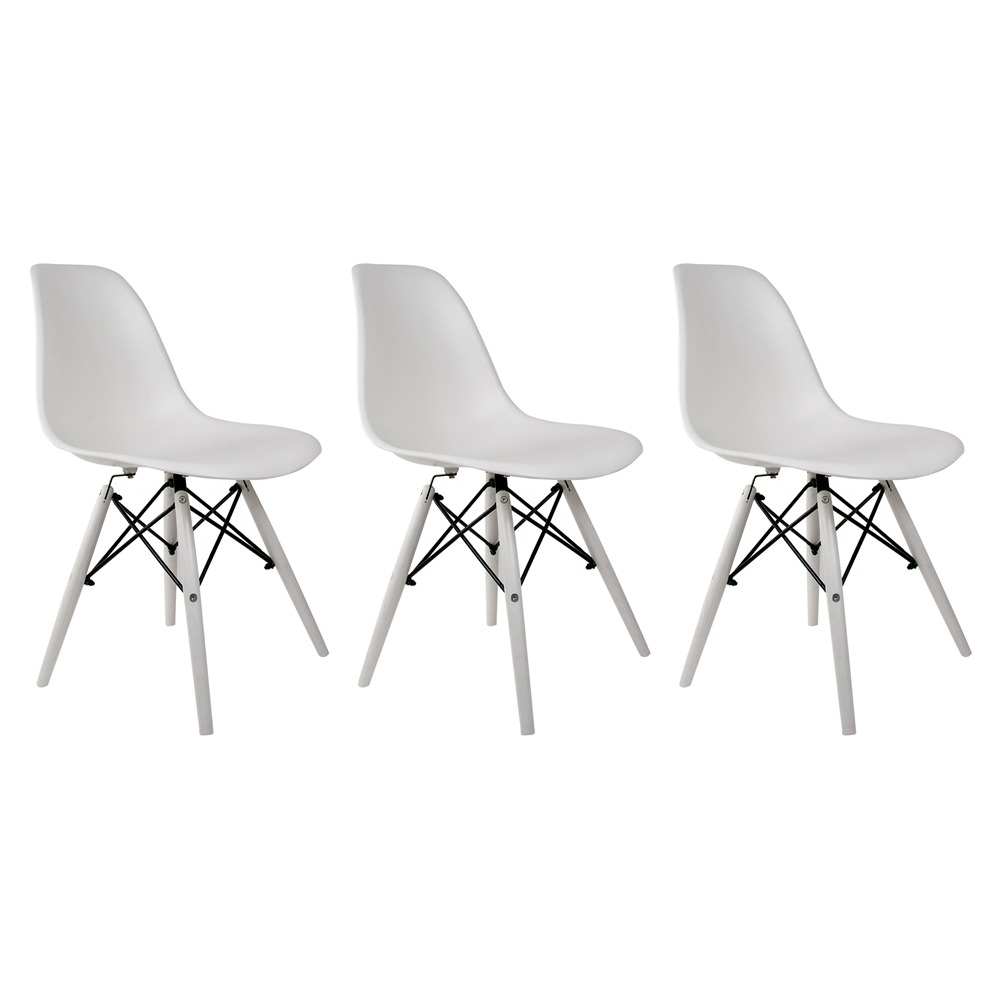 Conjunto 3 Cadeiras Eames Eiffel Pés Em Polipropileno Adulto - Cores Escrivaninha Escritorio