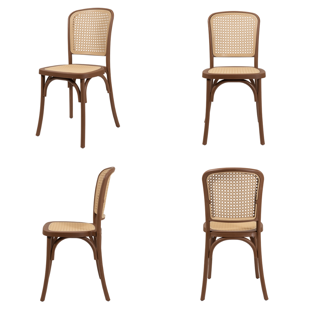 Conjunto 2 Cadeiras Amis Com Assento Rattan Sala de Jantar Empilhavel