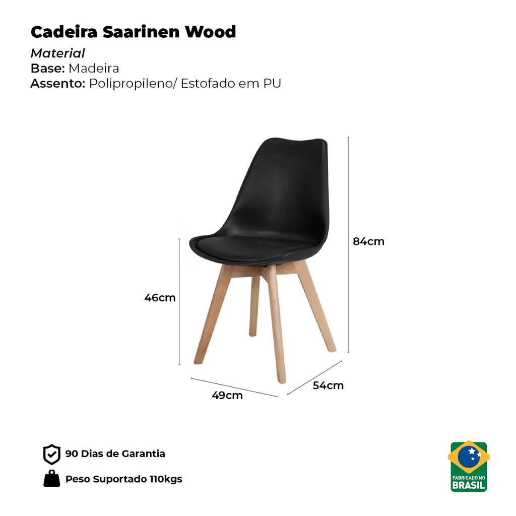 Conjunto 2 Cadeiras Sala de Jantar Saarinen Leda Estofada Wood - Cores Diversas