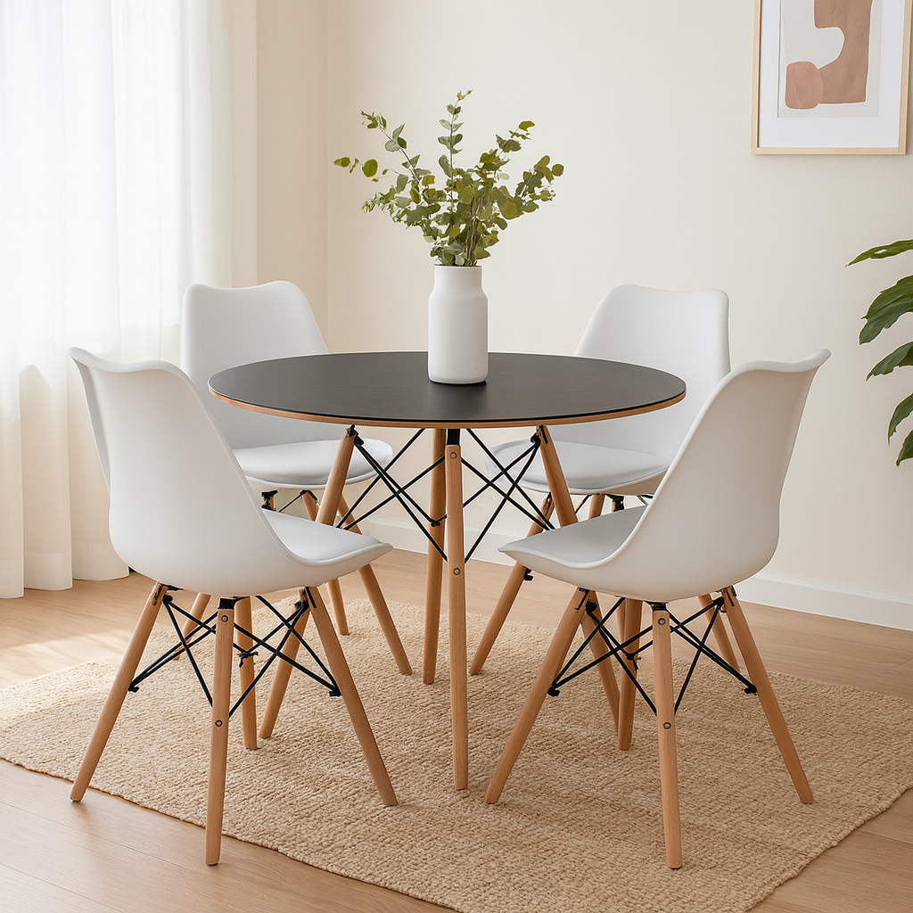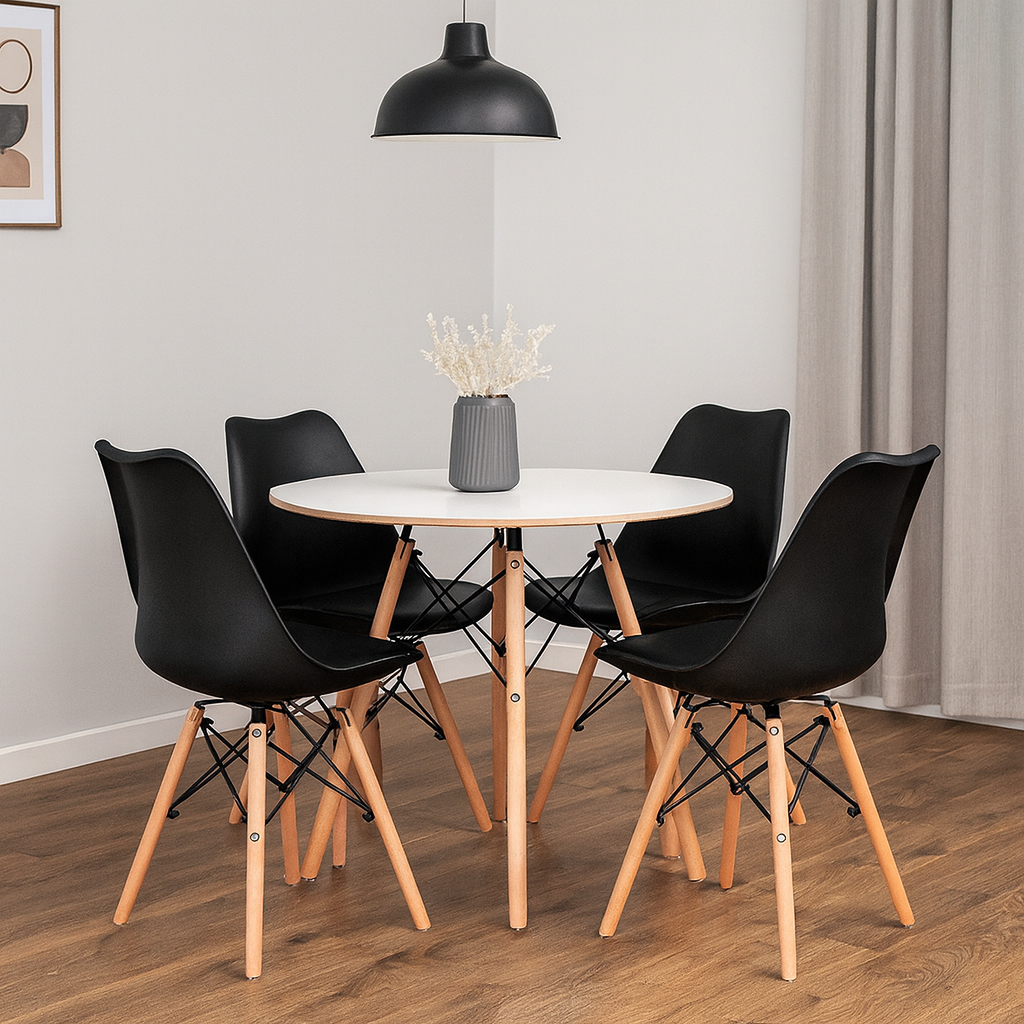 Conjunto Sala de Jantar Mesa Eames 90cm + 4 Cadeiras Saarinen Dsw Cores