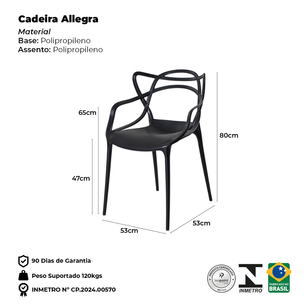 Cadeira Allegra Polipropileno Inmentro Empilhável Sala Cozinha Jantar Jardim Área Externa - Seat&Co