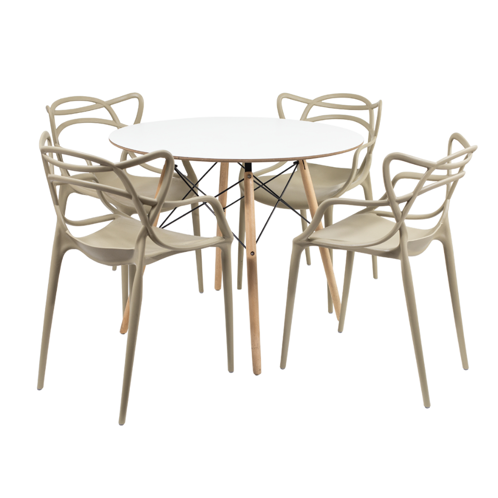 Conjunto Mesa Eames 90cm + 4 Cadeiras Allegra Empilhável Inmetro Sala Cozinha Jantar - La Mobilia