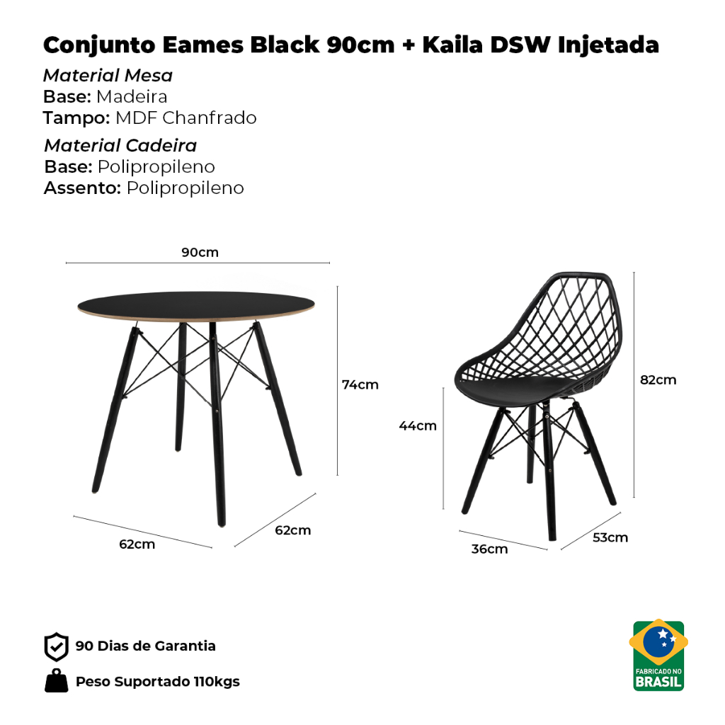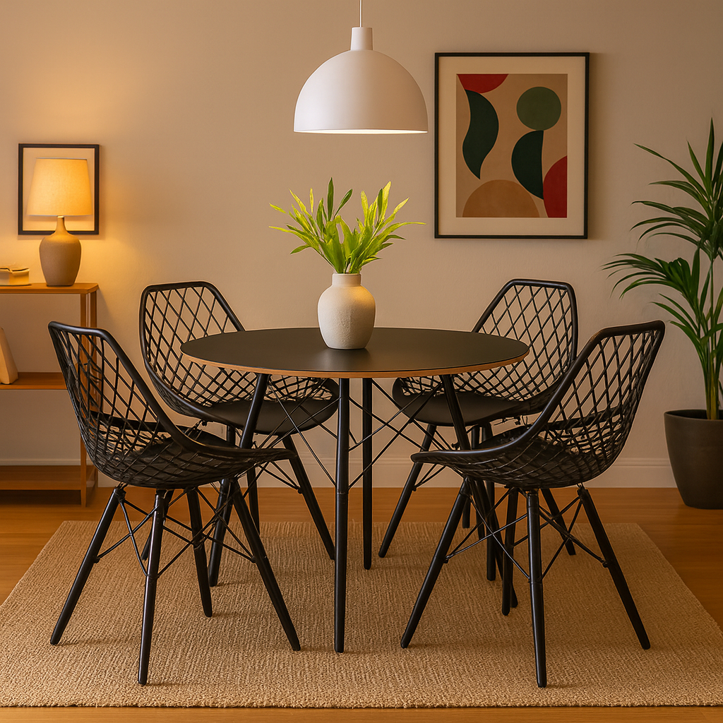Conjunto Mesa Redonda Eames Black 90cm + 4 Cadeiras Kaila Injetada Sala Cozinha Jantar - La Mobilia