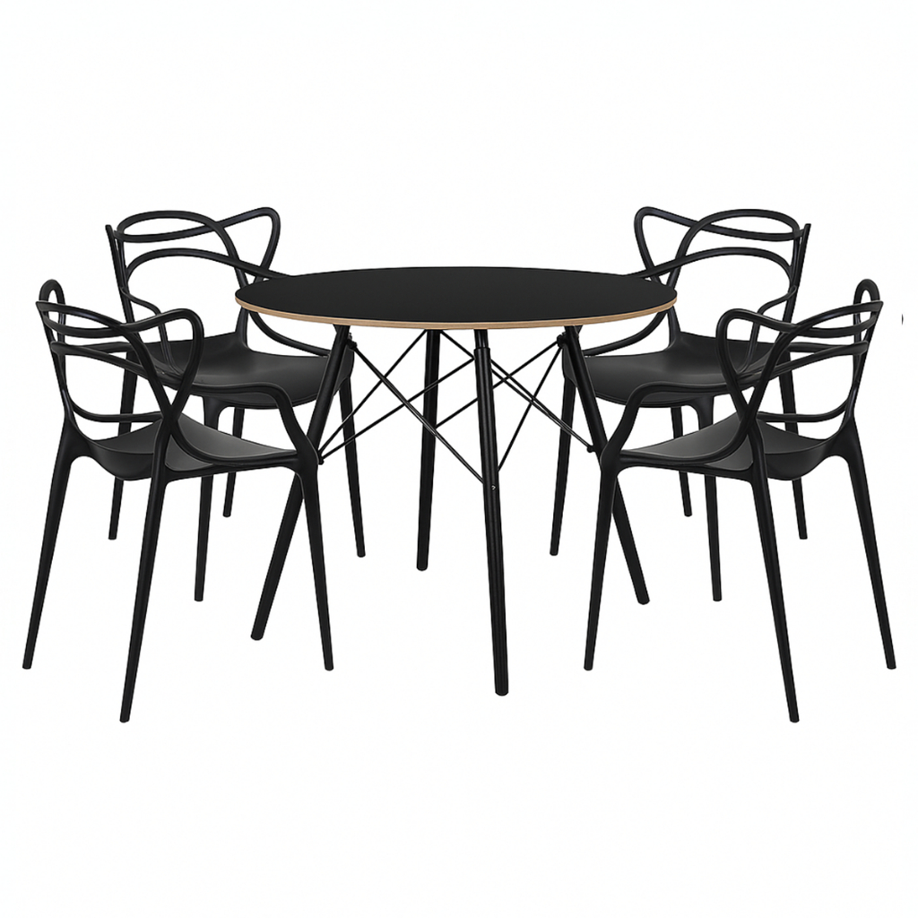 Conjunto Mesa Redonda Eames Black 90cm + 4 Cadeiras Allegra Sala Cozinha Jantar - La Mobilia