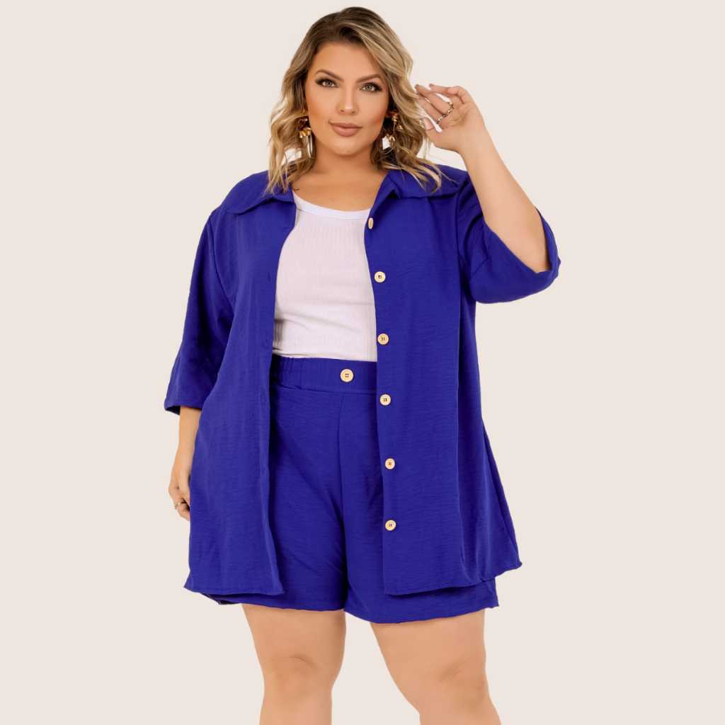 Conjunto Plus Size Kimono Short e Camisa GG ao G4 Estilo Conforto e Elegância