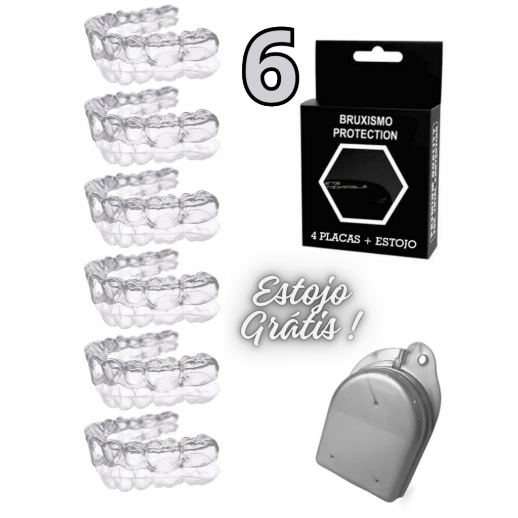 2 Placas Protetor Bucal Moldável (1 par) + Estojo Moldeira Molde Silicone Bruxismo Caseiro Protetor
