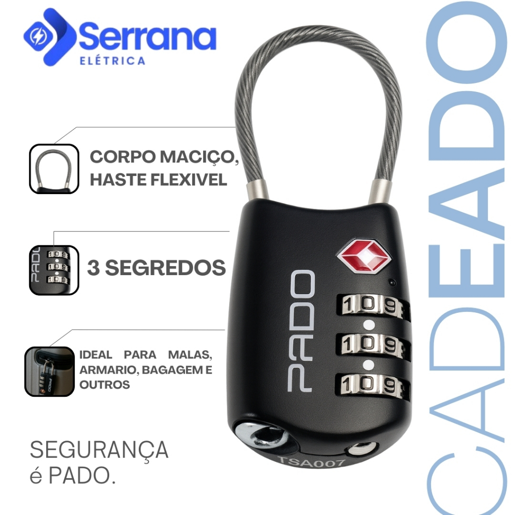 Cadeado de 3 Segredos Personal TSA Preto para Mala Armário Mochila Pado Bagagem