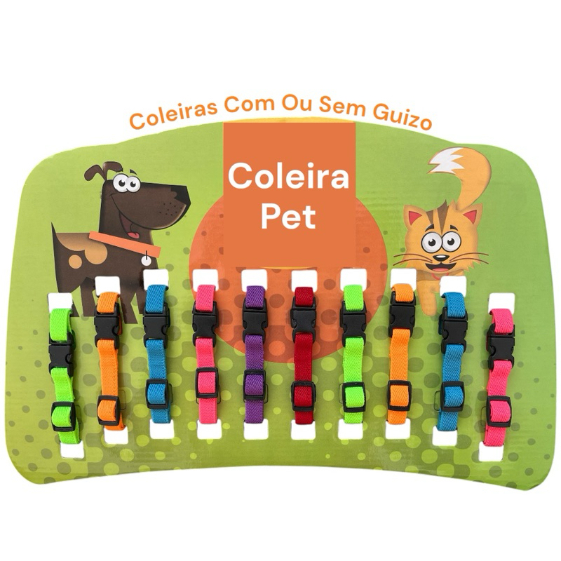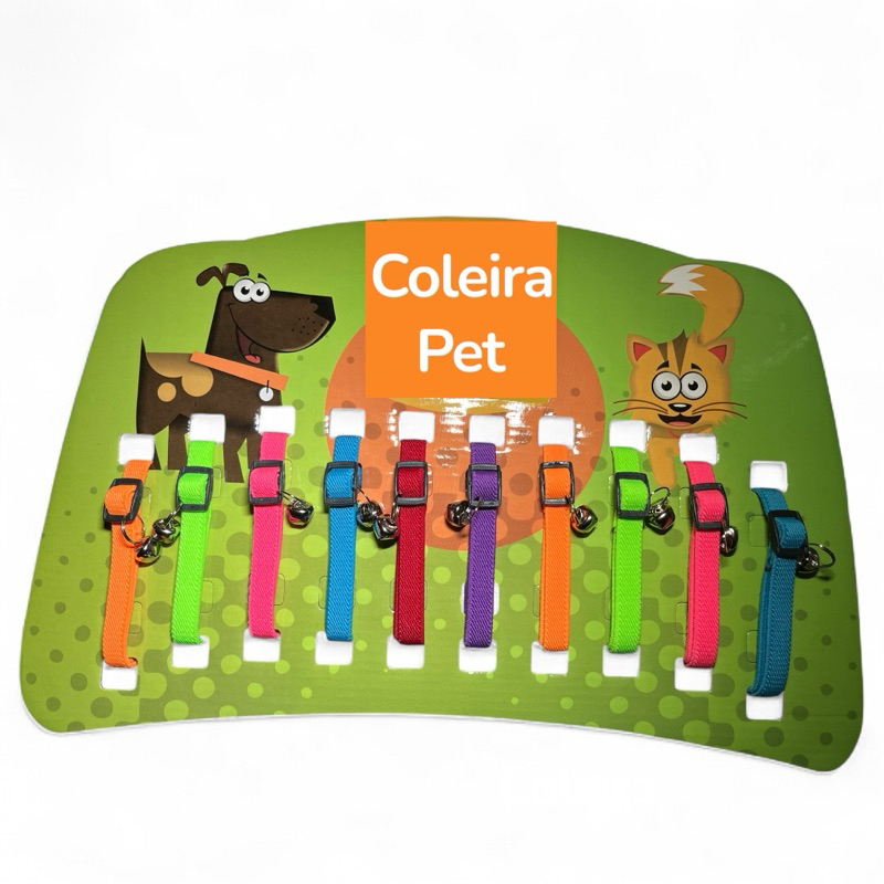 Coleira Para Gato Cartela com 10 Unidades Reguláveis Com Guizo Sino Preço Atacado