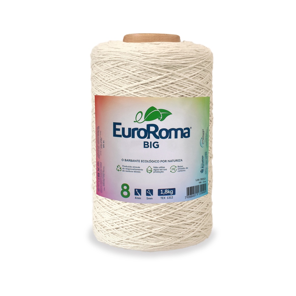 Barbante Cru Fio 4 - Fio 6 e Fio 8 EuroRoma Big Cone 1,8 Kg