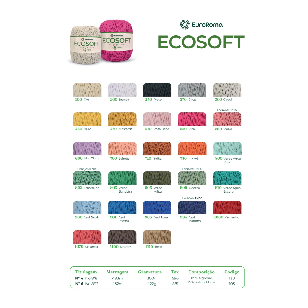 Barbante EuroRoma Ecosoft Número 4 - 300g / 483 metros - Fio Macio