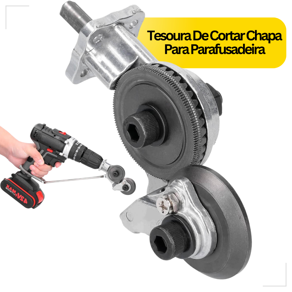 Tesoura Adaptador Cortador De Chapa Para Parafusadeira Cortes Até 08mm Rápidos e Precisos