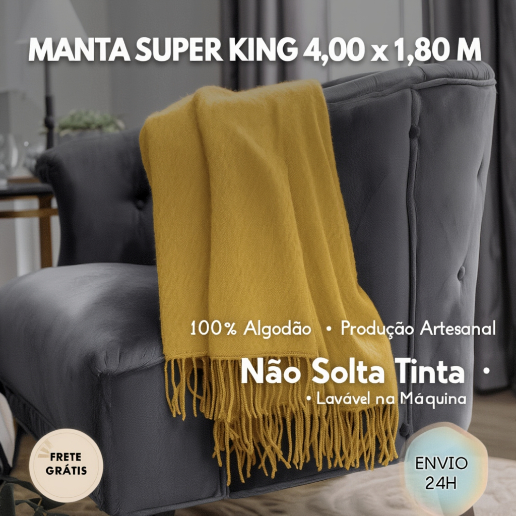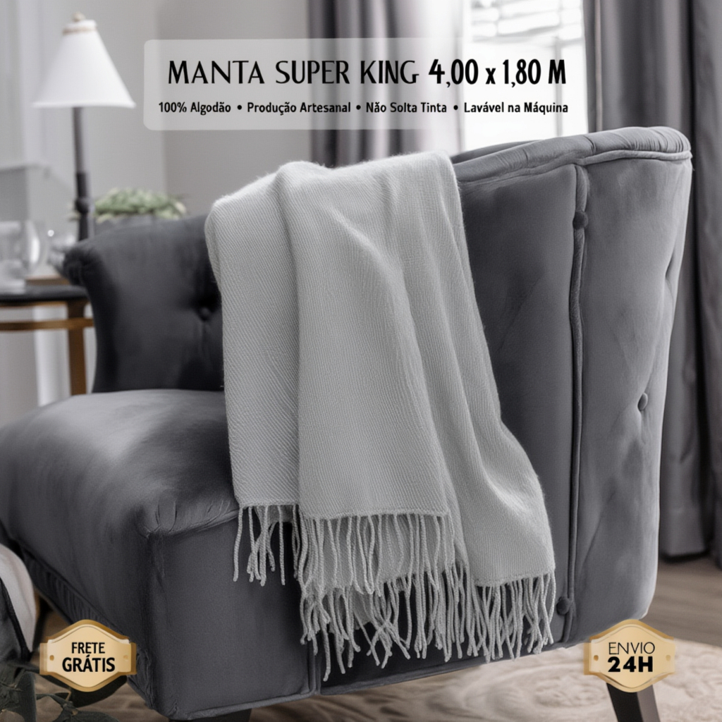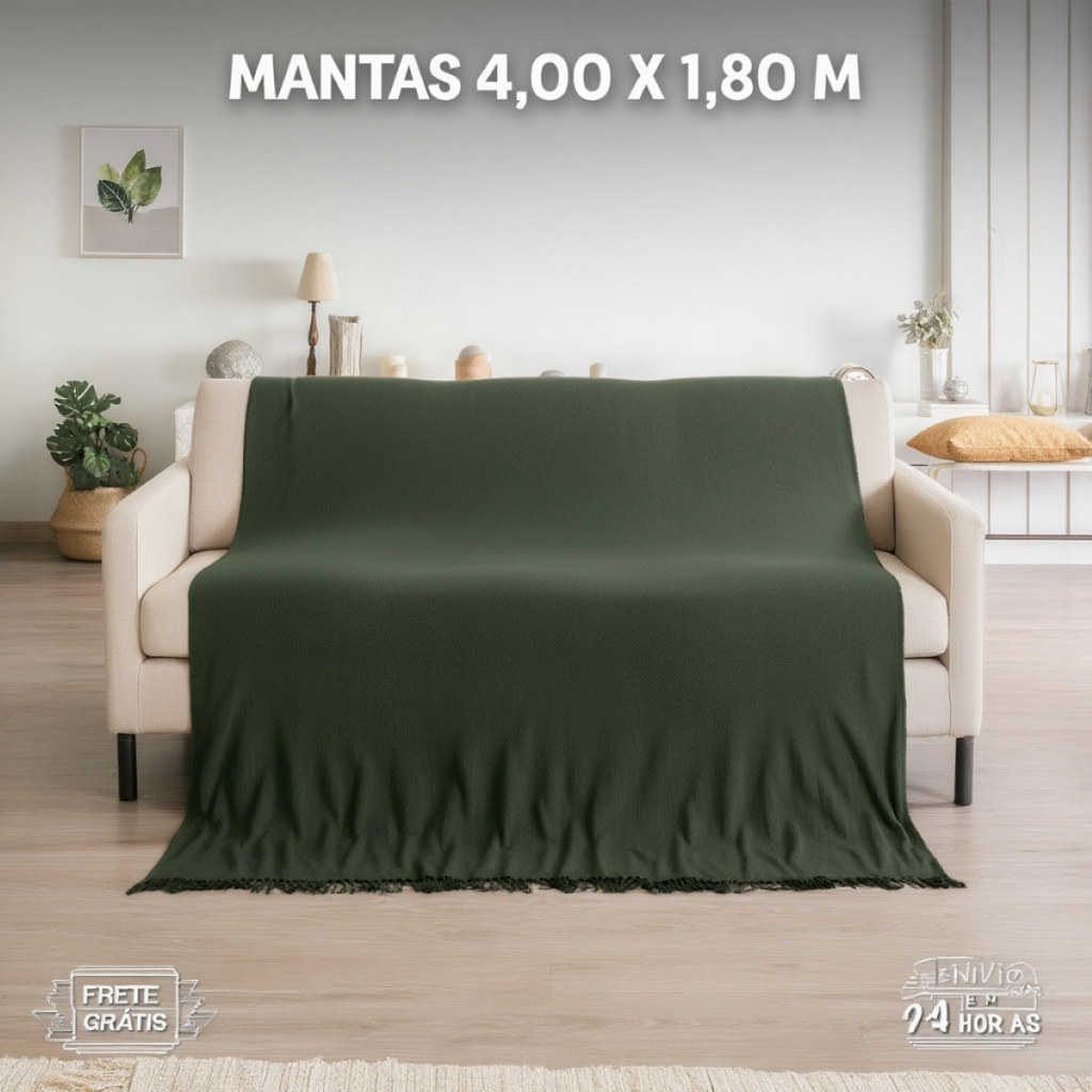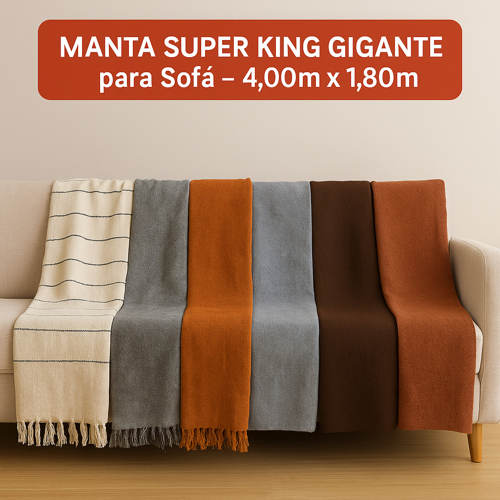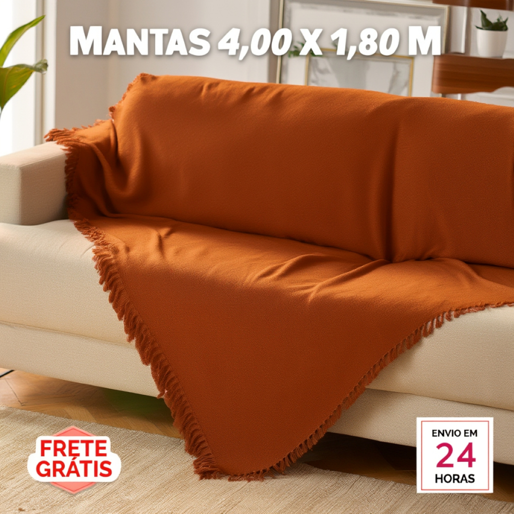 Manta para Sofá 4,00 x 1,80 m 2, 3 ou 4 Lugares Retrátil Super King Size Algodão Capa p/ Sofa