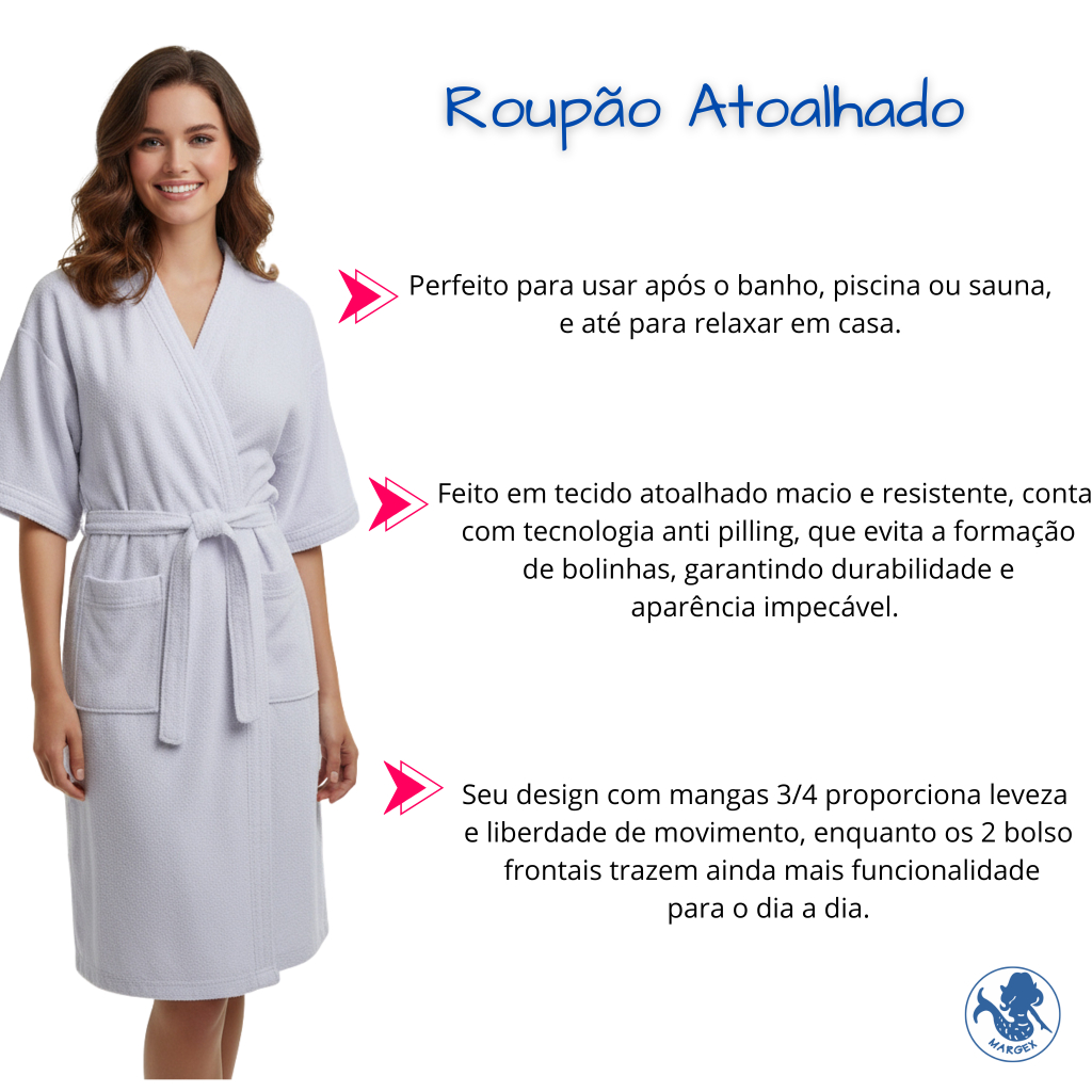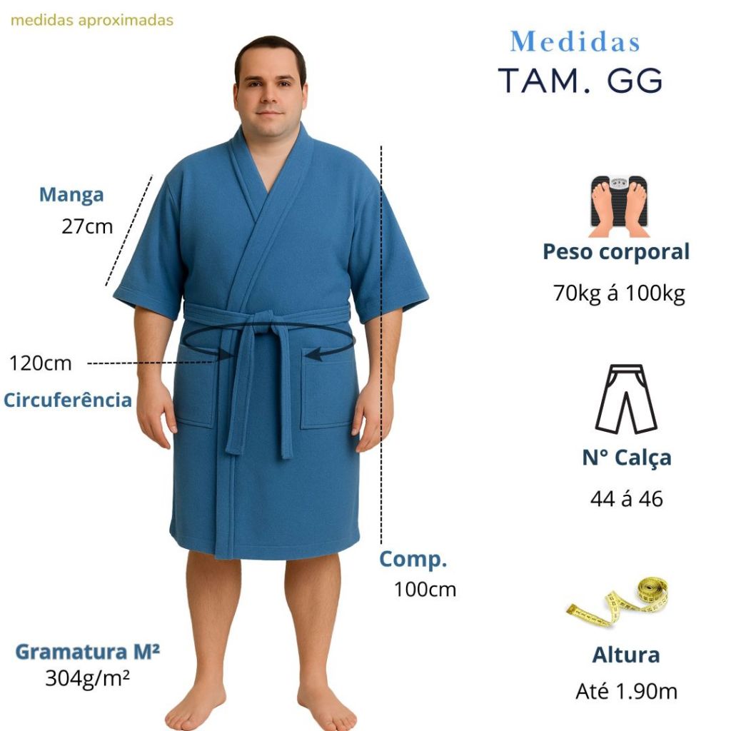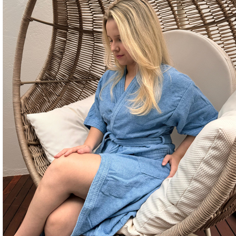 Roupão Adulto Atoalhado Robe Manga Curta 100% Algodão Unissex Masculino Feminino
