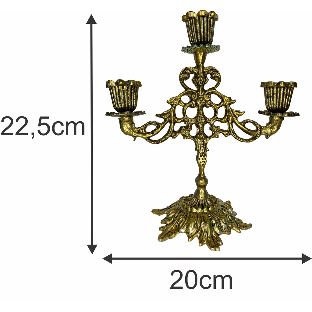 Castiçal Candelabro Suporte P/ Velas Dourado/envelhe 3 Velas