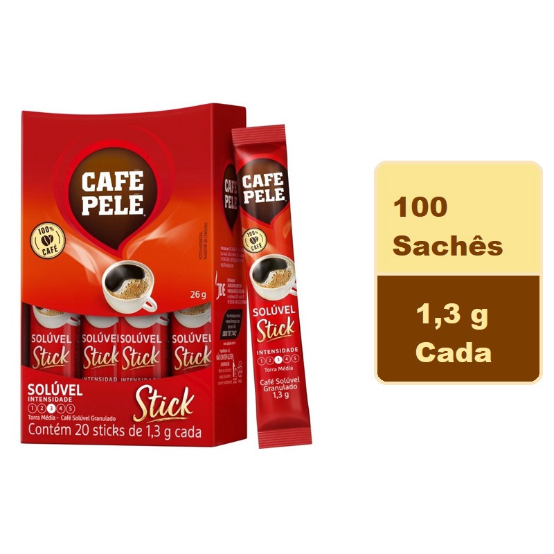 Café Pelé Solúvel Sachê Sticks de 1,3g Cada
