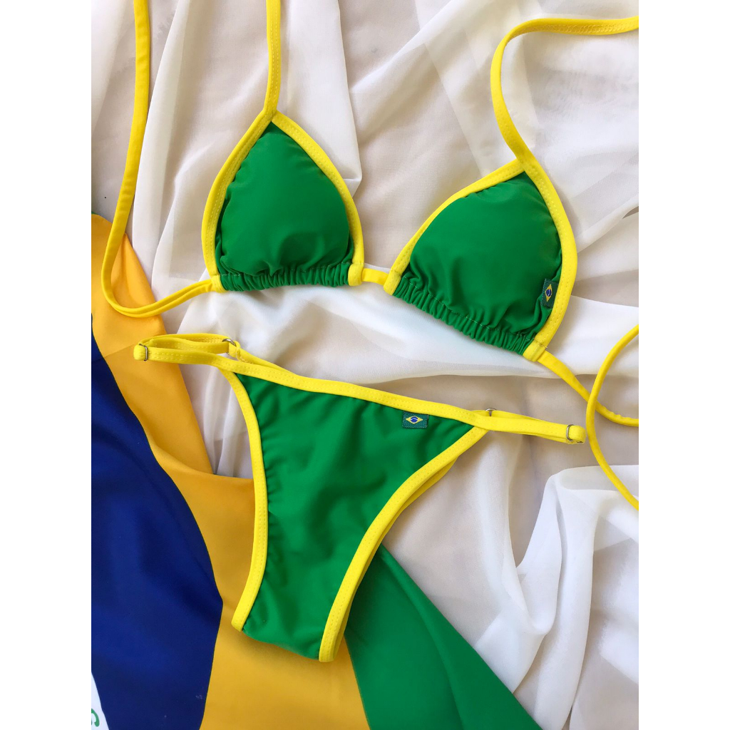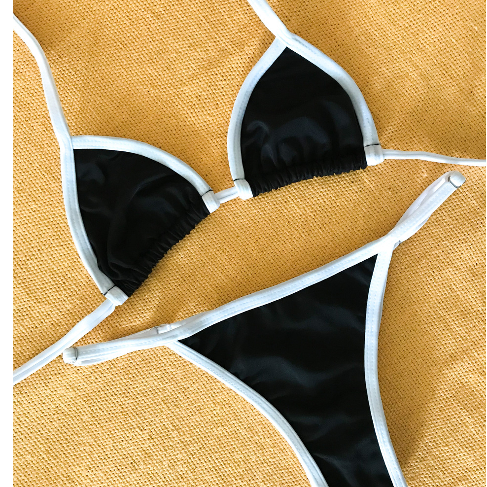 Biquíni Cortininha de Fita para Bronzear Semi Fio Preto e Branco P&B Brasil Bicolor com Regulador