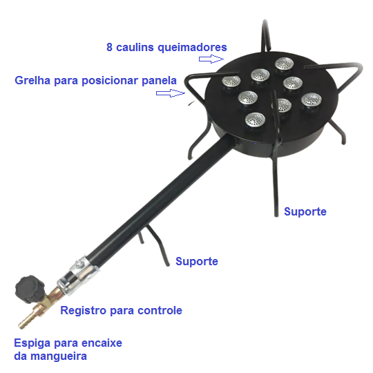 Kit Queimador De Mesa C/ Mangueira Alta Pressão 8 Caulins