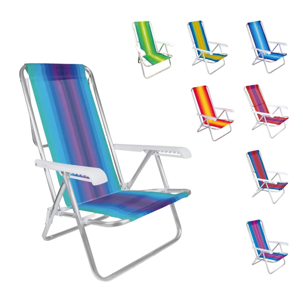 Cadeira De Praia Reclinável 8 Posições Alta Suporta 100Kg MOR - Cheque as cores no chat