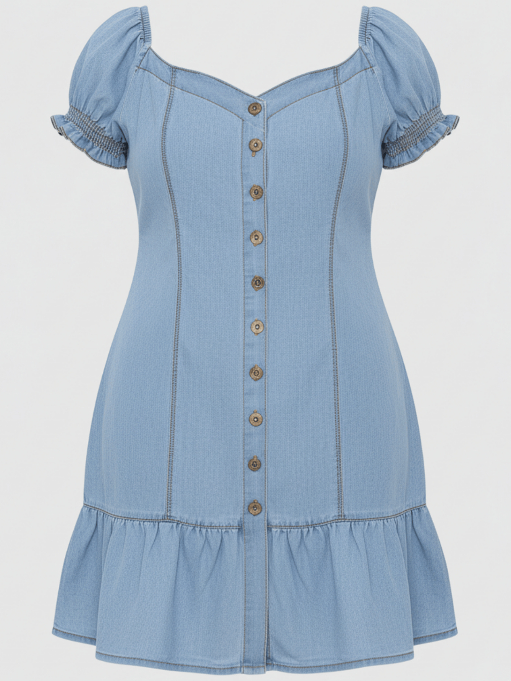 Vestido Jeans Feminino Plus Size Peplum Senhora Premium Moda Maior Elegante