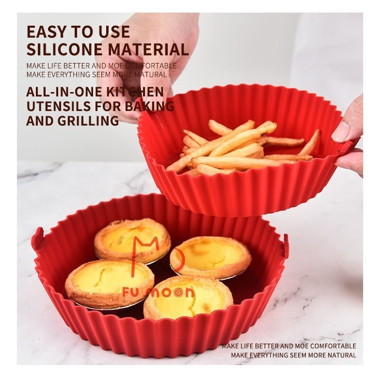 Kit 1/2/3 Formas de Silicone para Air Fryer, Forno e Micro-ondas – Assadeira Reutilizável Antiaderente Flexível