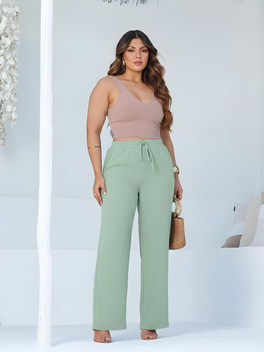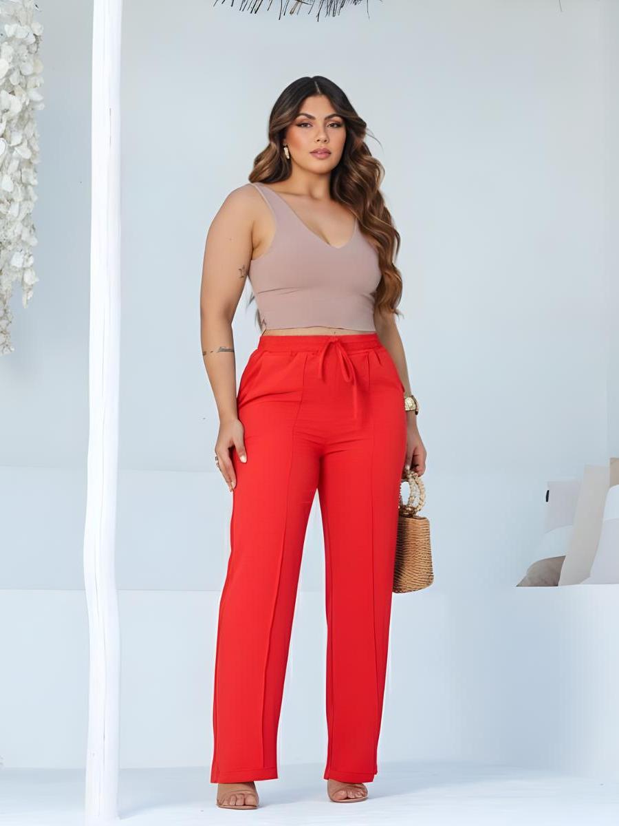 Calça Pantalona Tecido Duna Leve e Confortável Moda Elegante Feminina Natal Ano Novo