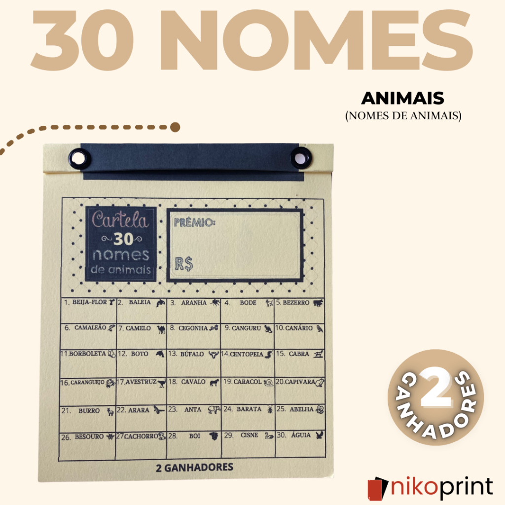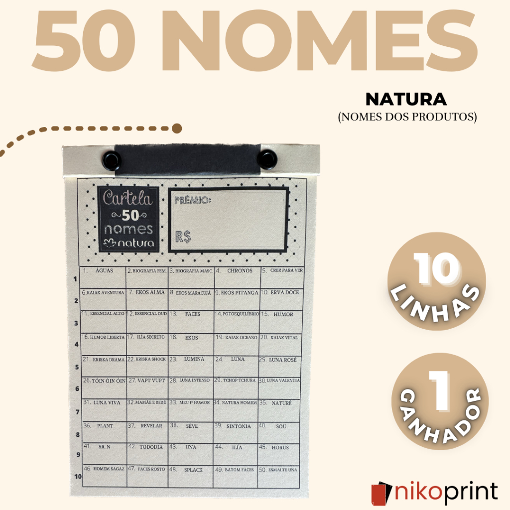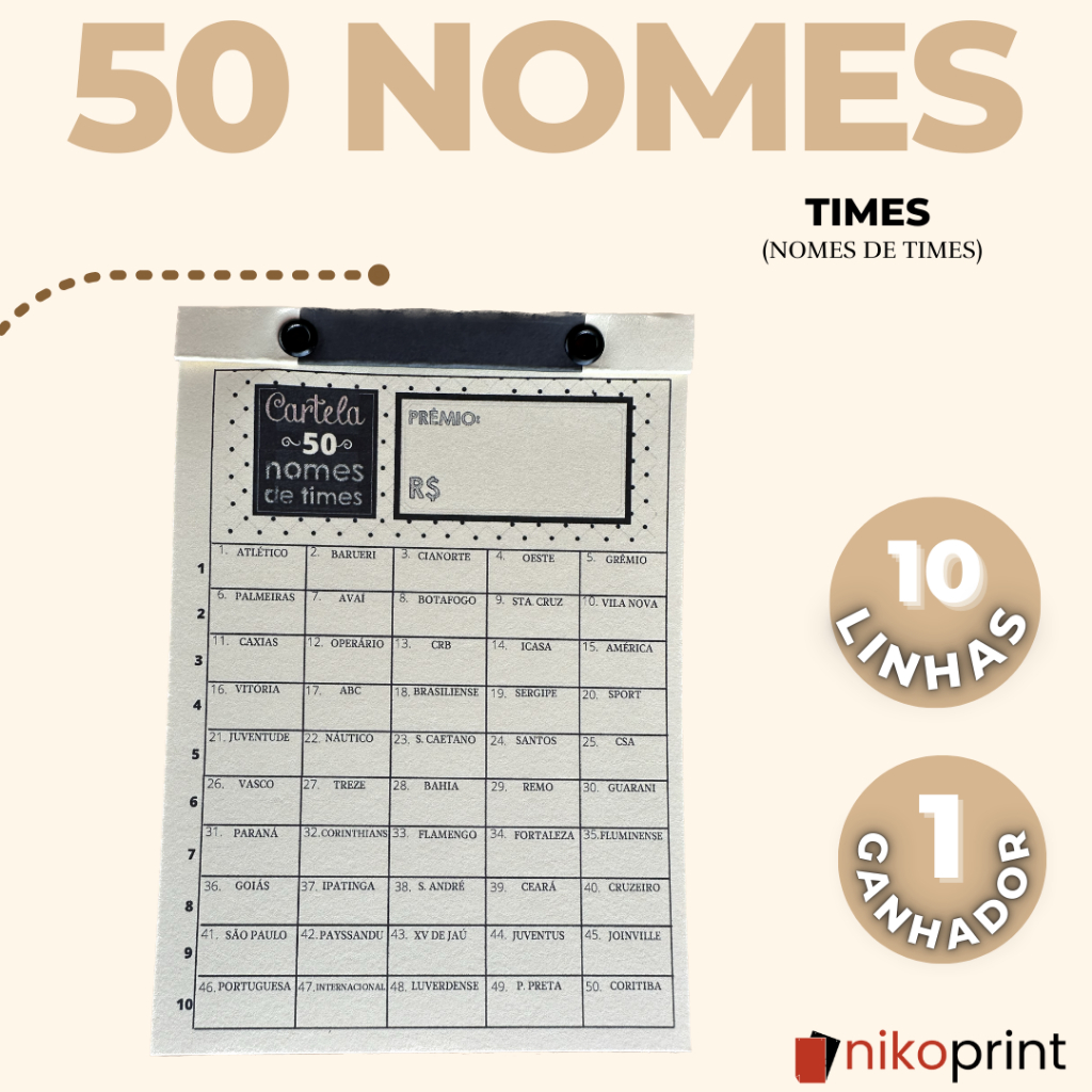 Cartela de rifa - Animais|Times|Países|Flores|Carros|Bíblicos|Natura|oBoticário|doTERRA