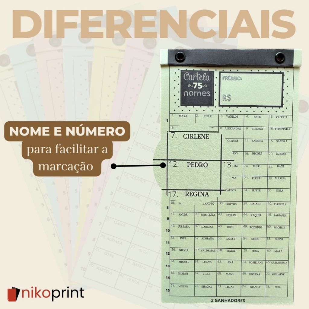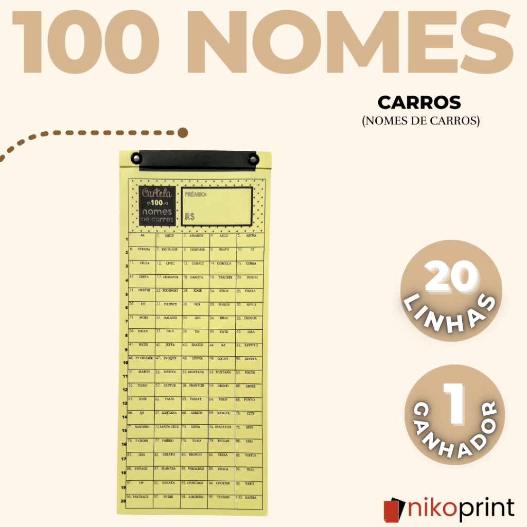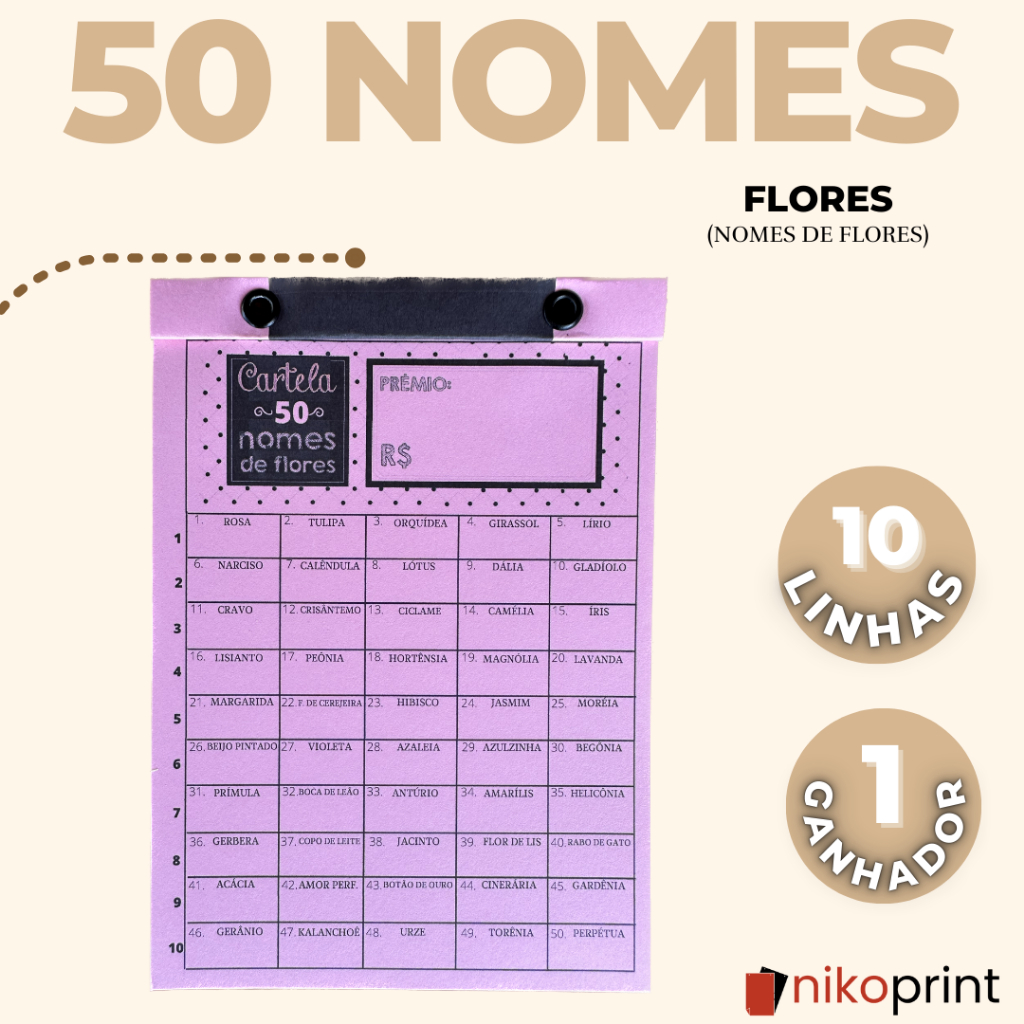 Cartela de rifa - Animais|Times|Países|Flores|Carros|Bíblicos|Natura|oBoticário|doTERRA