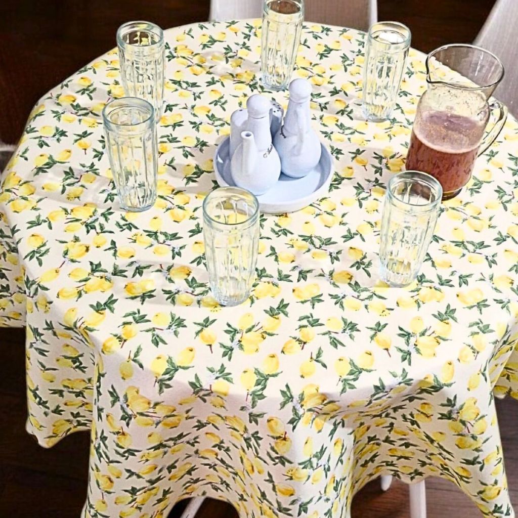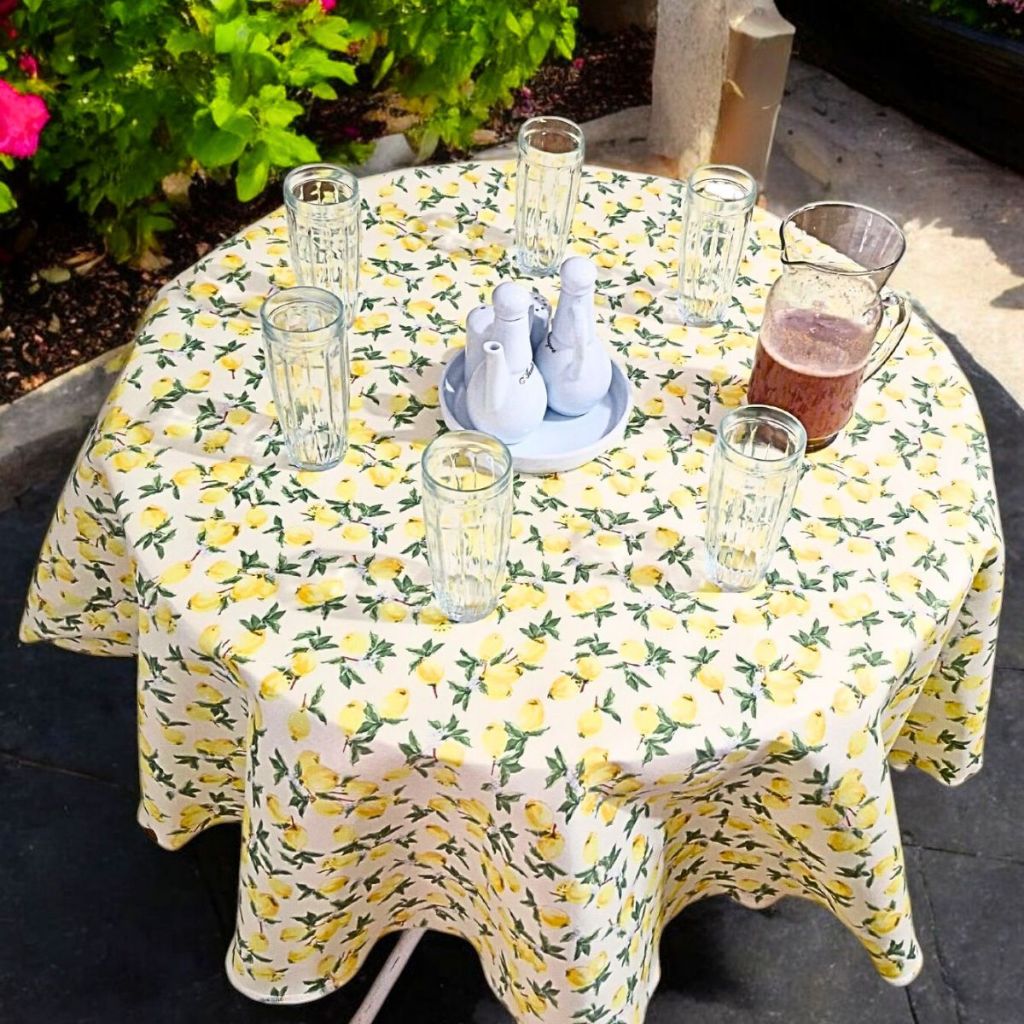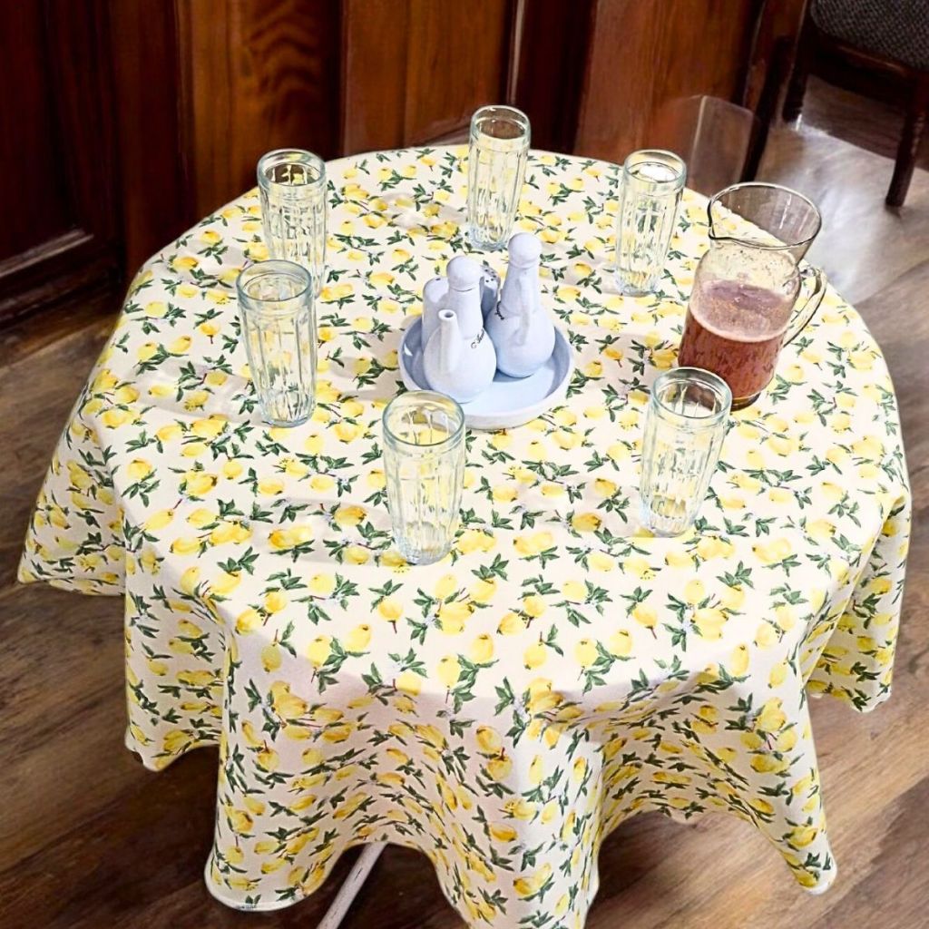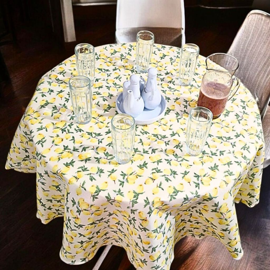 Toalha Redonda Estampada de Mesa Limão Siciliano 1,50 x 1,50 Tecido Oxford