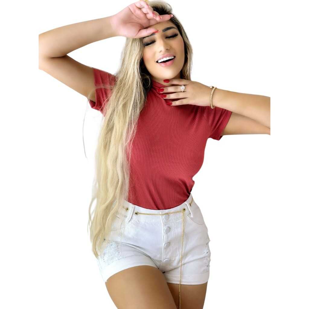 Blusinha Manga Curta Feminina Cor Goiaba, Blue Vestiére
