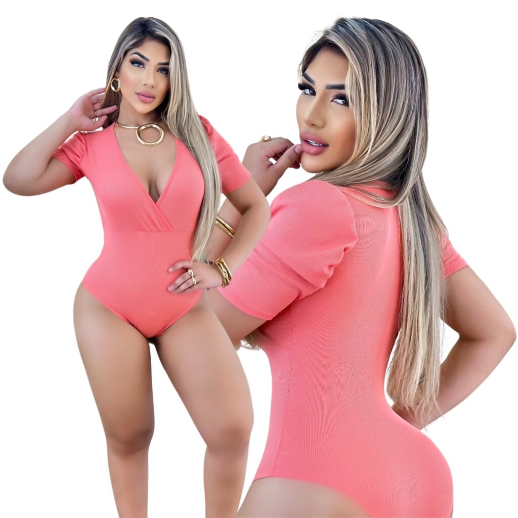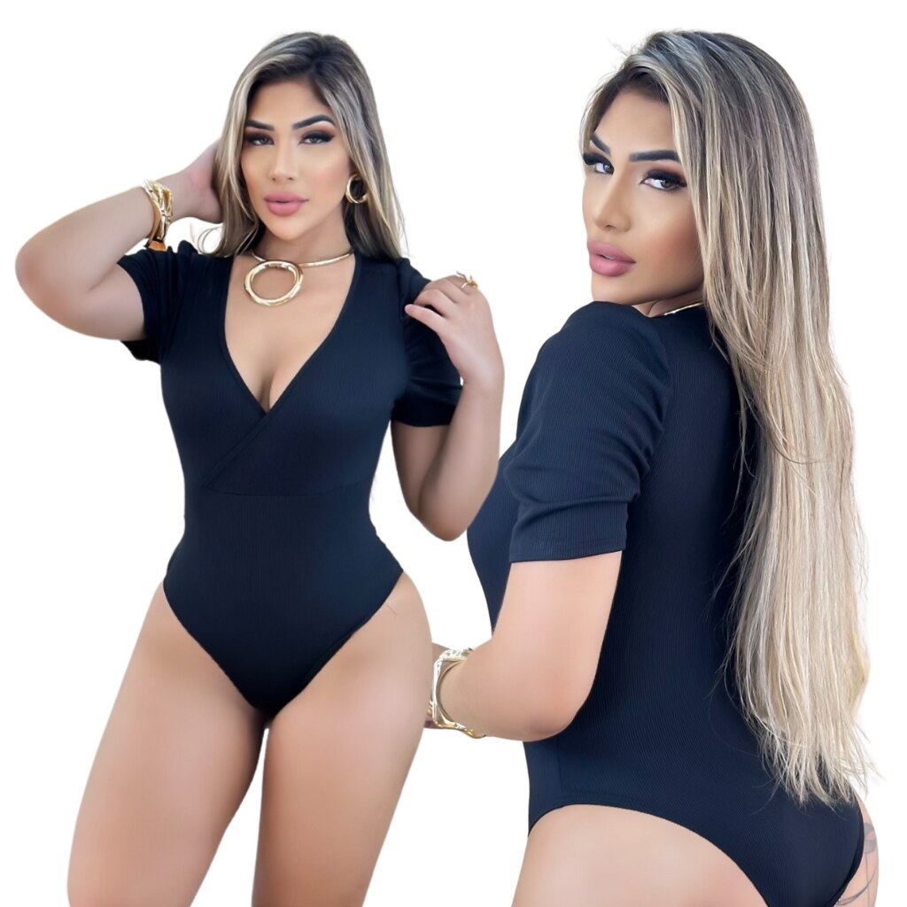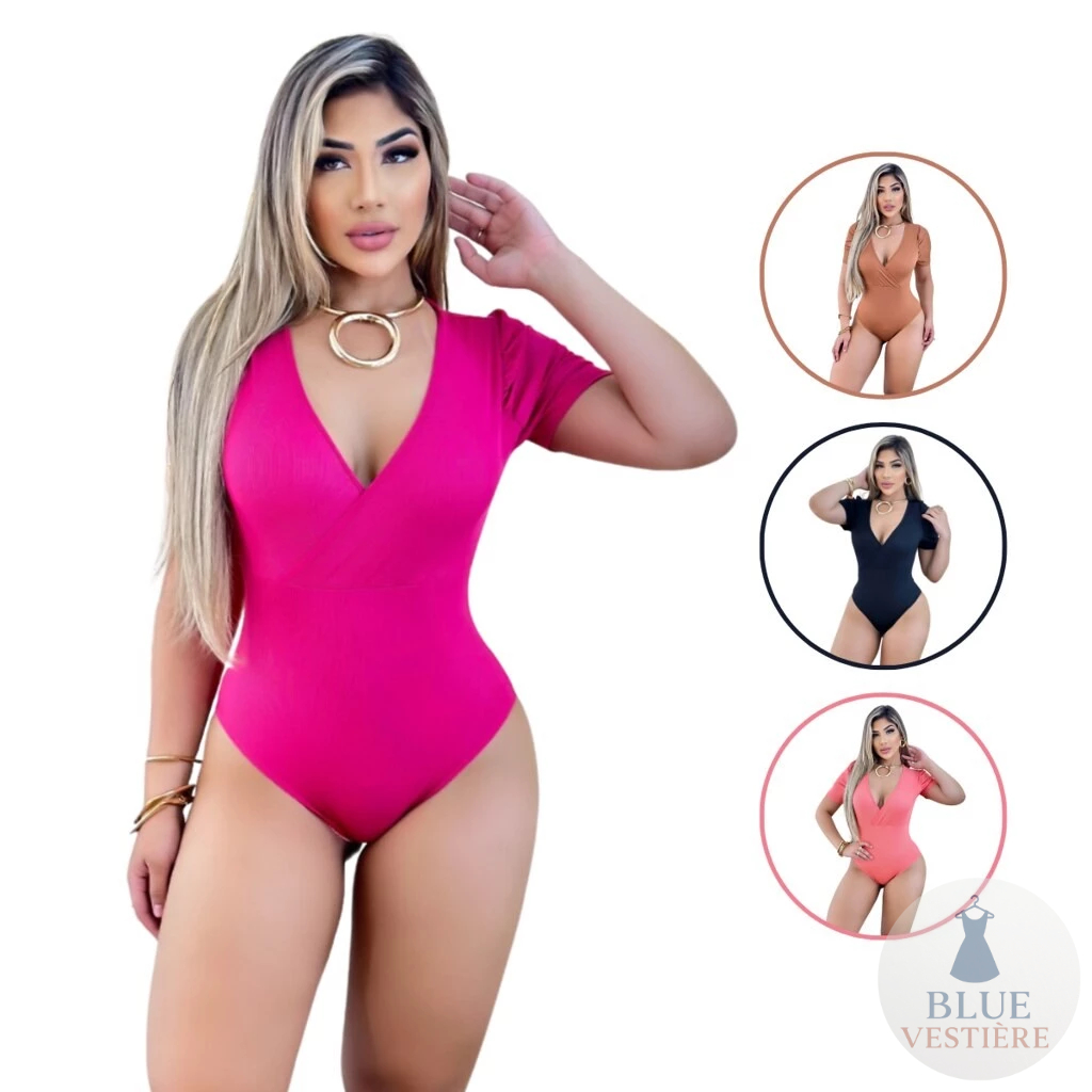 Kit 3 Body Feminino Malha Ribana Decote em V, Blue Vestiére
