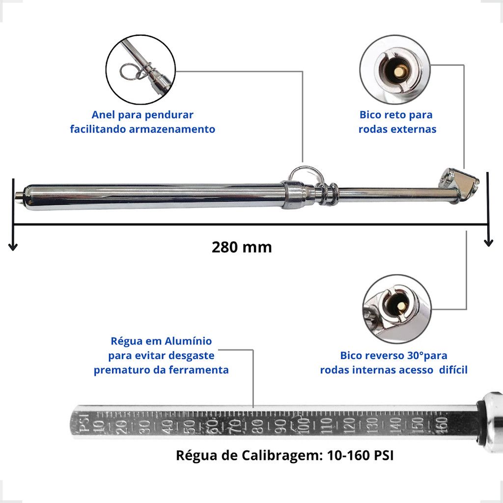 Calibrador De Pressão Pneus 160 Lbs Caminhão Profissional
