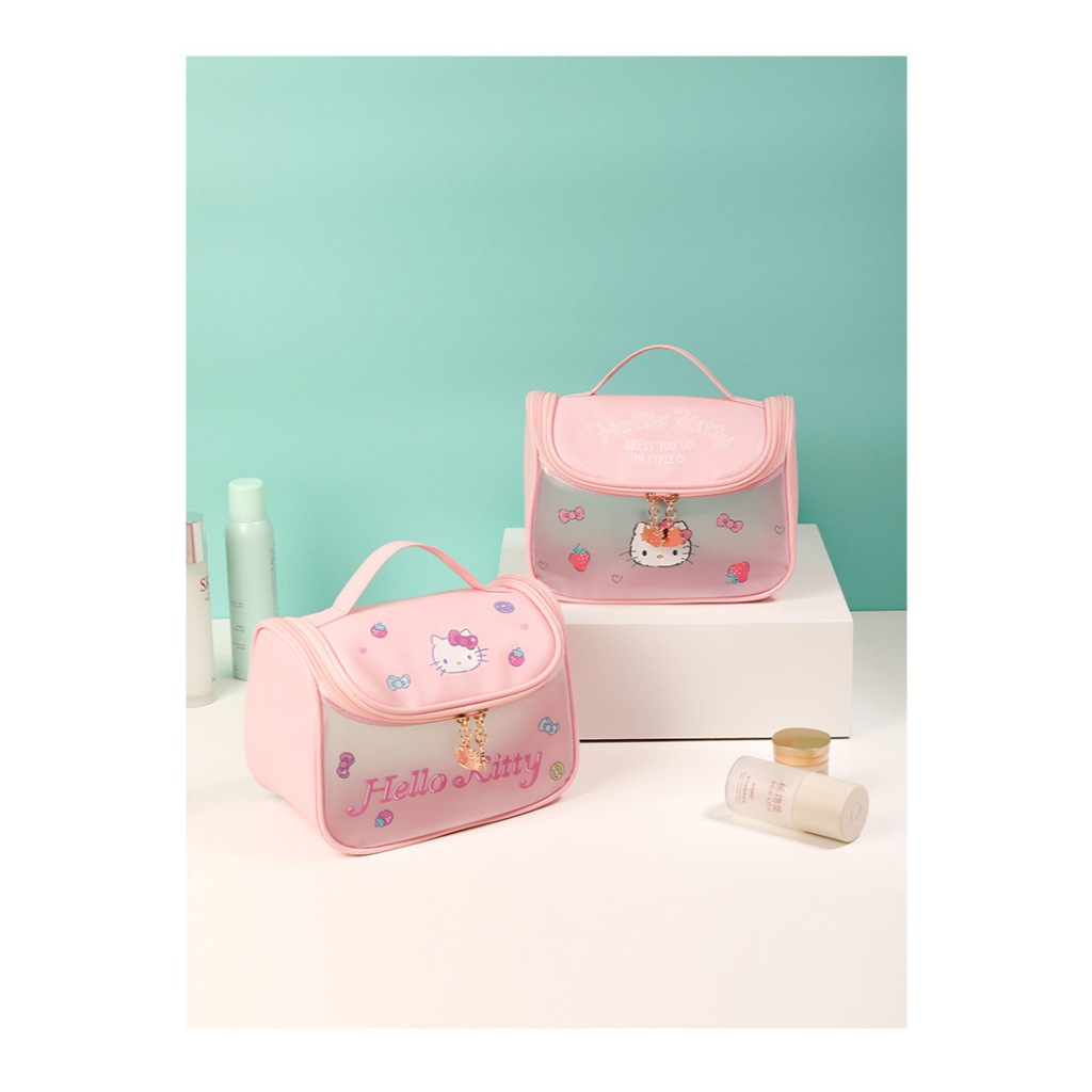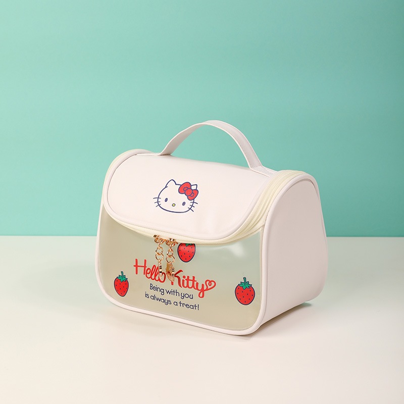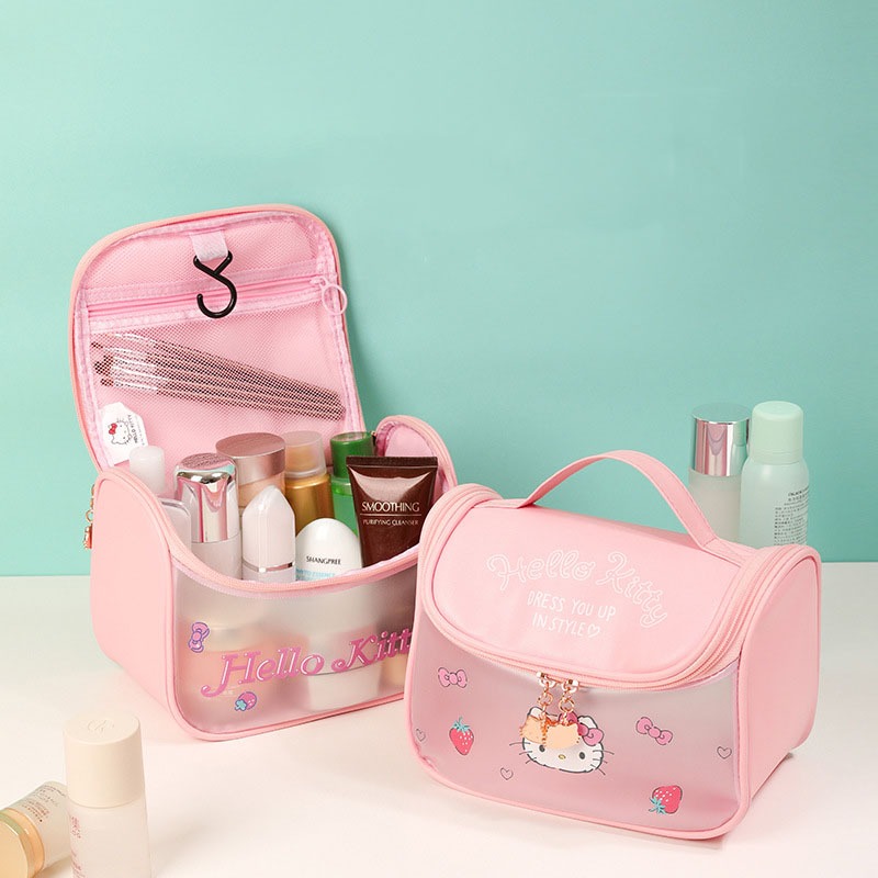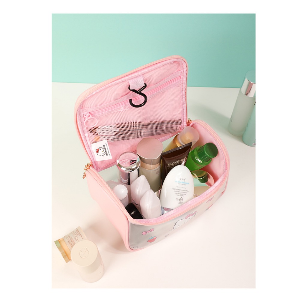 Hello Kitty Cosmetic Bag Cartoon Saco Cosmético Impresso De Grande Capacidade Higiênico Portátil De Viagem