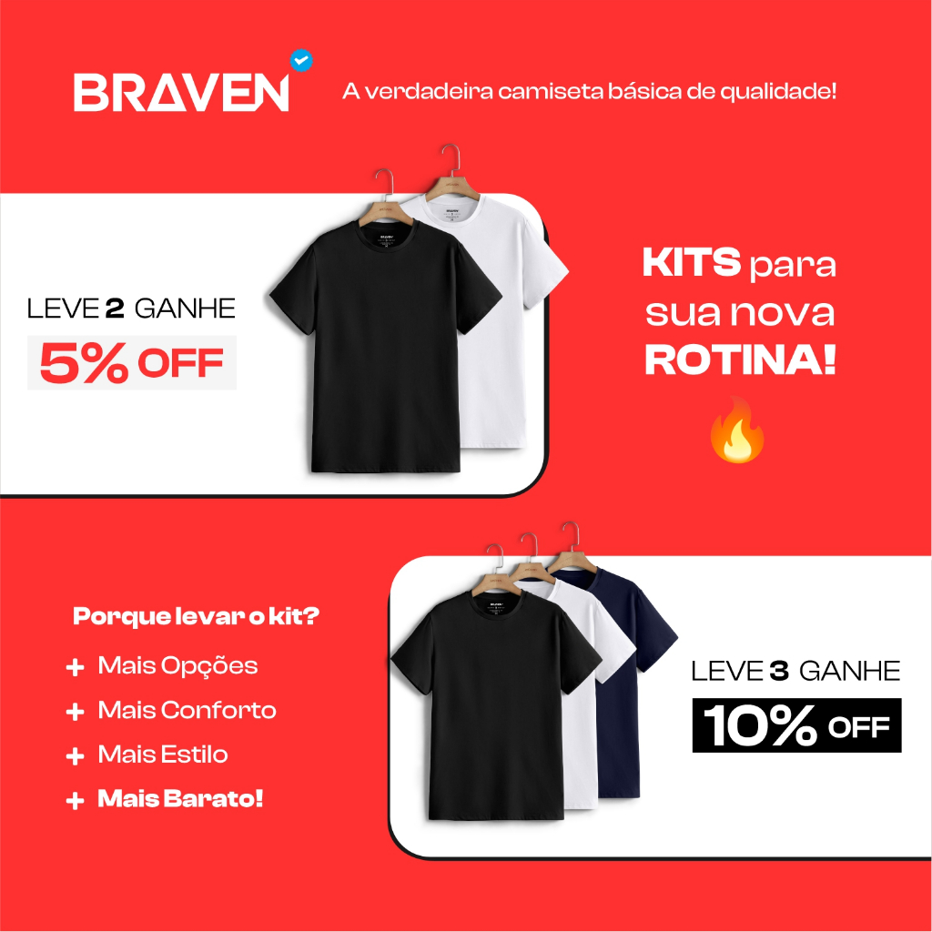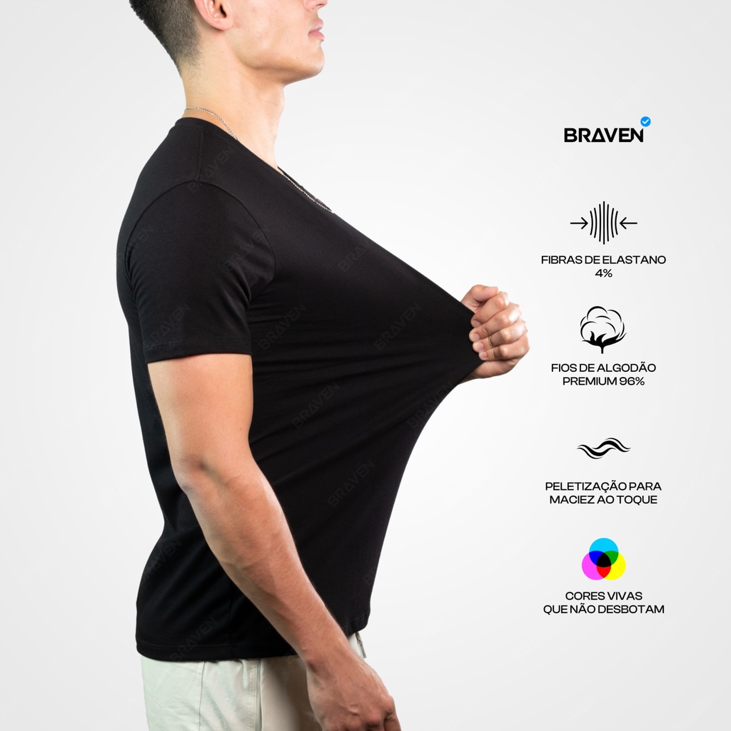 Camiseta Masculina Básica - Algodão Peruano Premium 40.1 - Pima com Elastano - Original Braven
