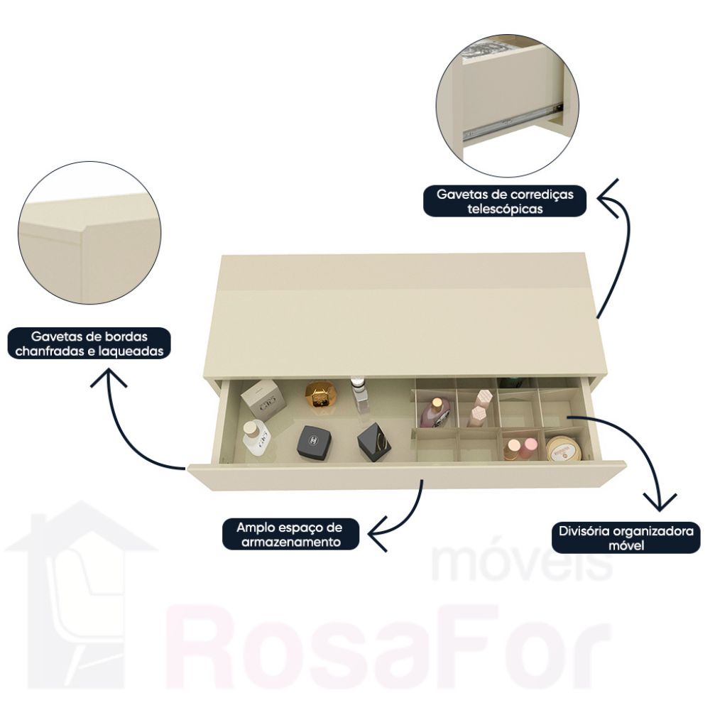 Aparador Nicho Sala Suspenso 1 Gaveta 080 Nobre Off White - Gelius