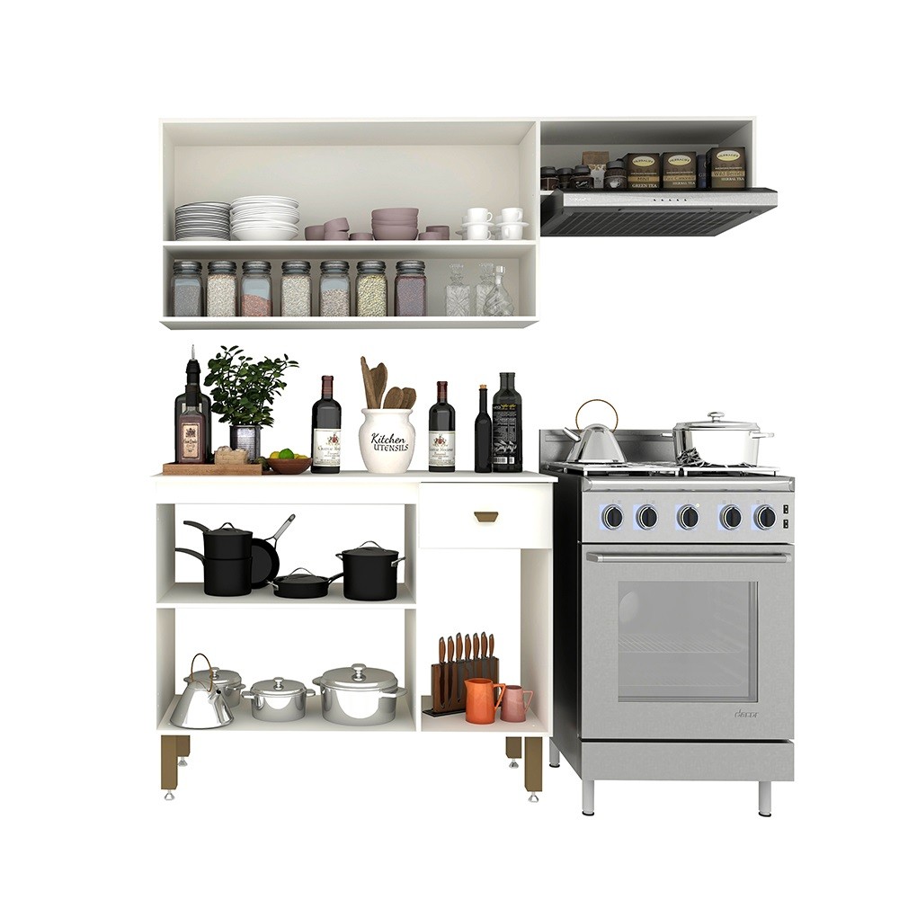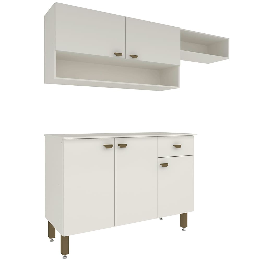 Armário de Cozinha Modulada Completa Compacta Balcão Madrid Branco 164 - RosaFor
