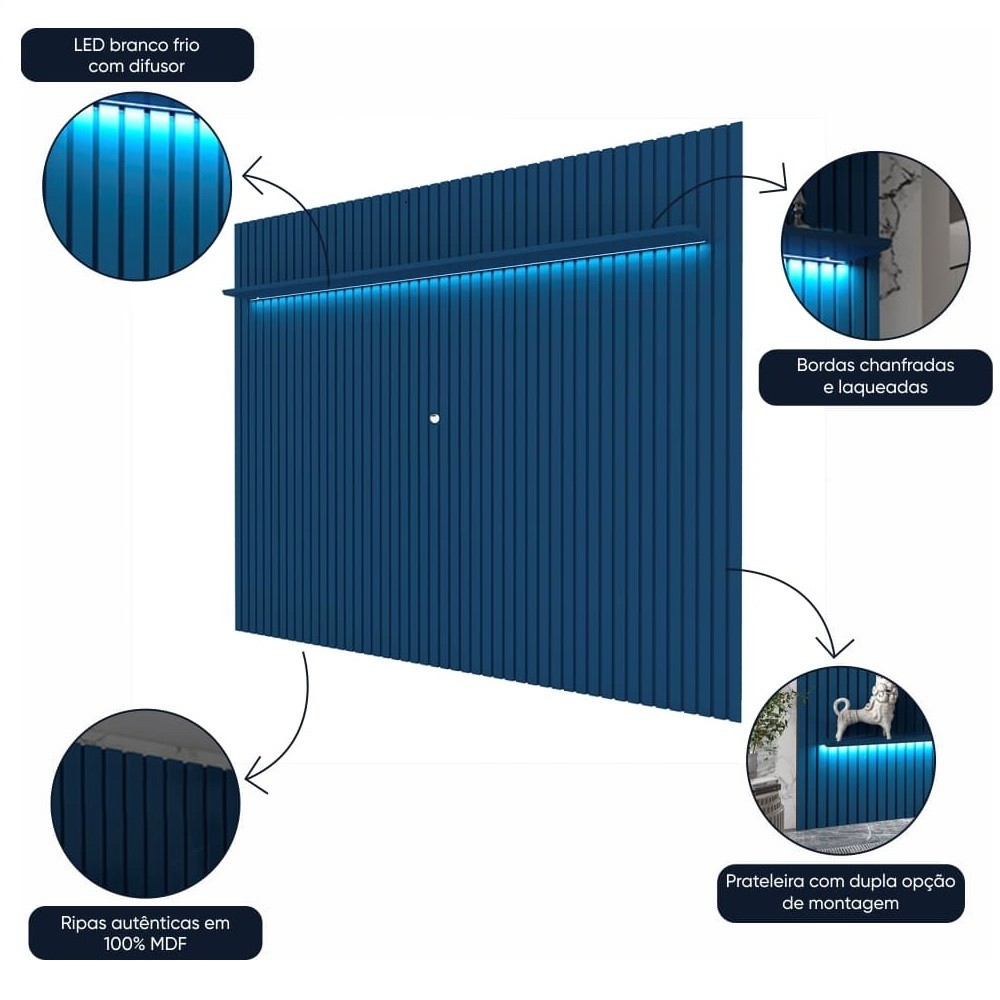 Painel para TV Ripado com LED Nobre 230 Azul - Gelius