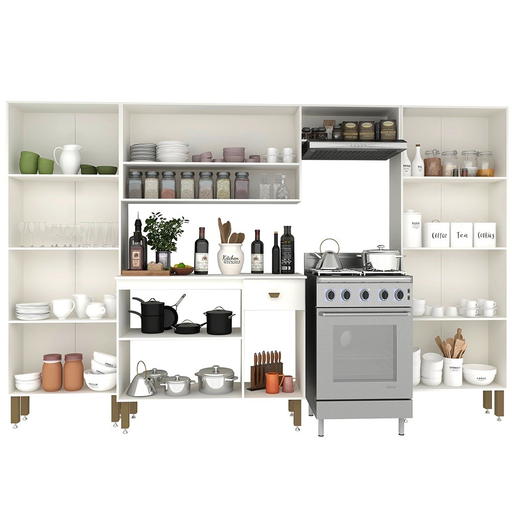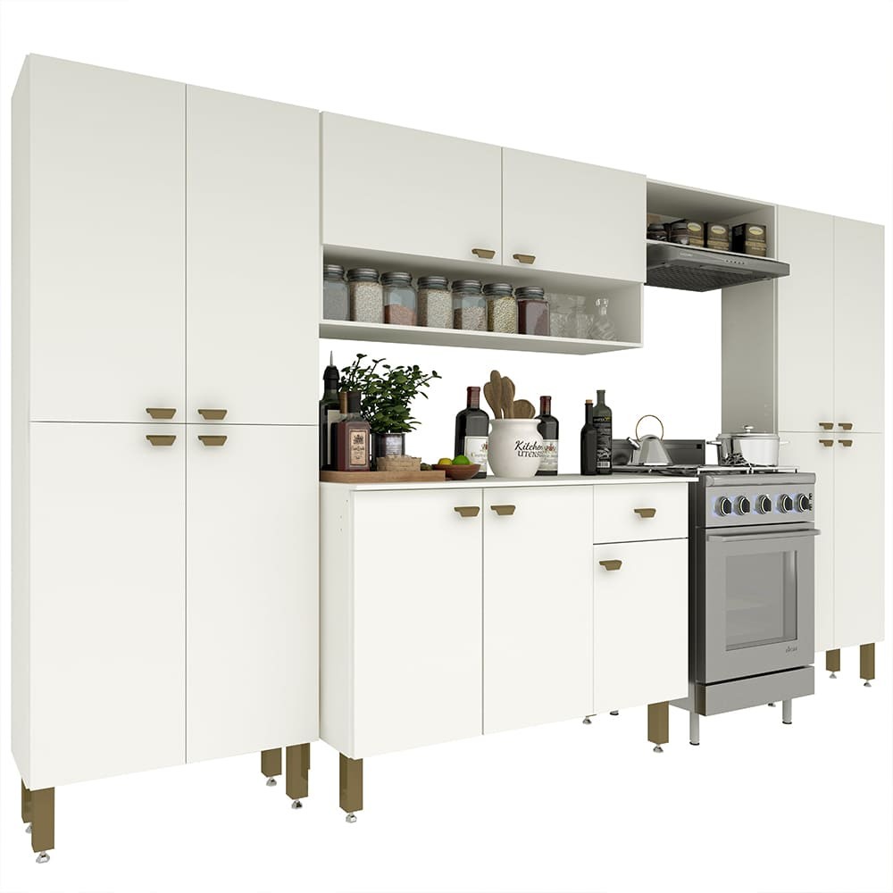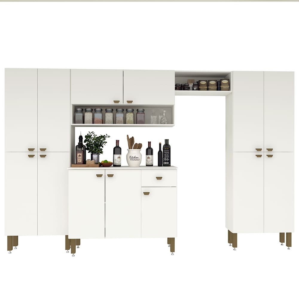 Armário de Cozinha Modulada Completa Compacta Balcão Madrid Branco 4 - RosaFor