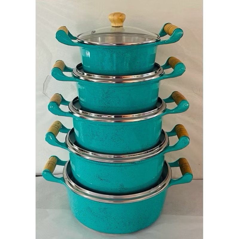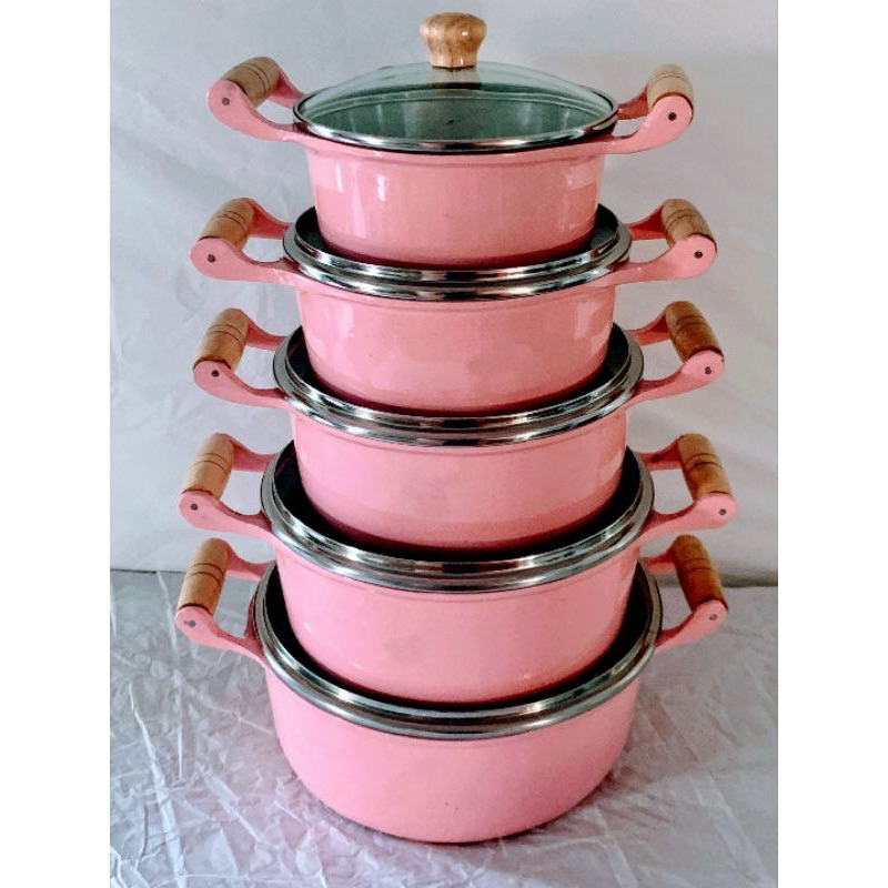 Jogo de Panelas 5 Peças Rosa Bebê ou Branco PREMIUM com Tampa de Vidro Alumínio Batido Fundido Grosso