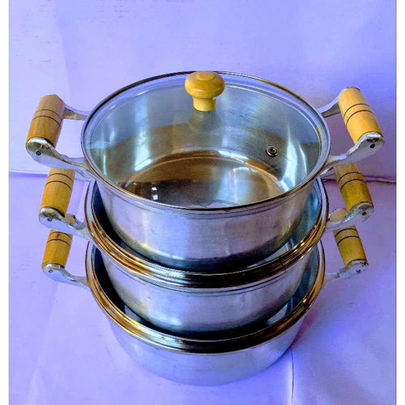 Jogo 3 Panelas + Frigideira 20 Alumínio Batido Fundido Grosso com Tampas de Vidro