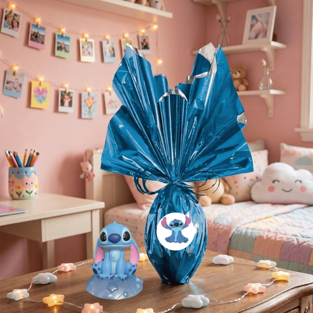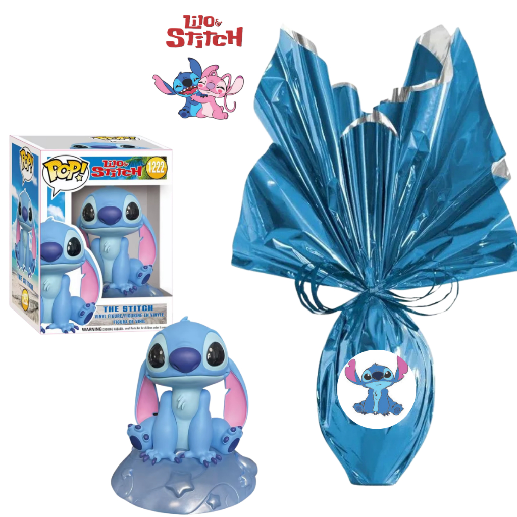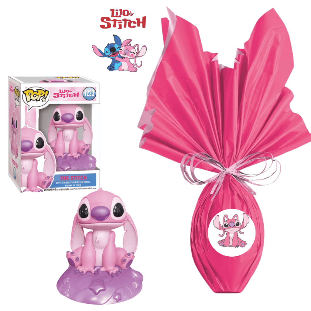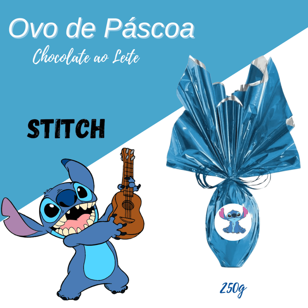 Kit Ovo de Páscoa 250g Boneco Lilo Stitch Angel Chocolate ao Leite Rosa e Azul