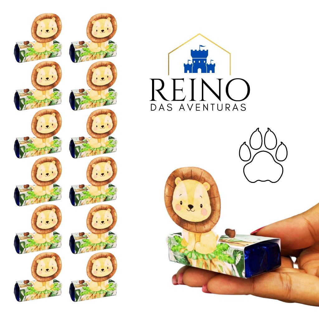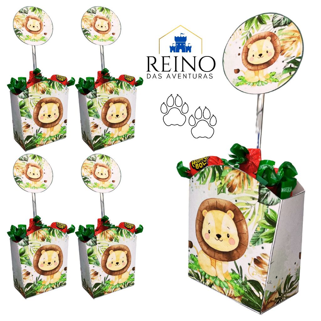 Envio imediato COM NOME - TEMA LEÃO LION (LE100) SAFARI AQUARELA Kit 85 ou 170 Lembrancinha de Aniversário Personalizado