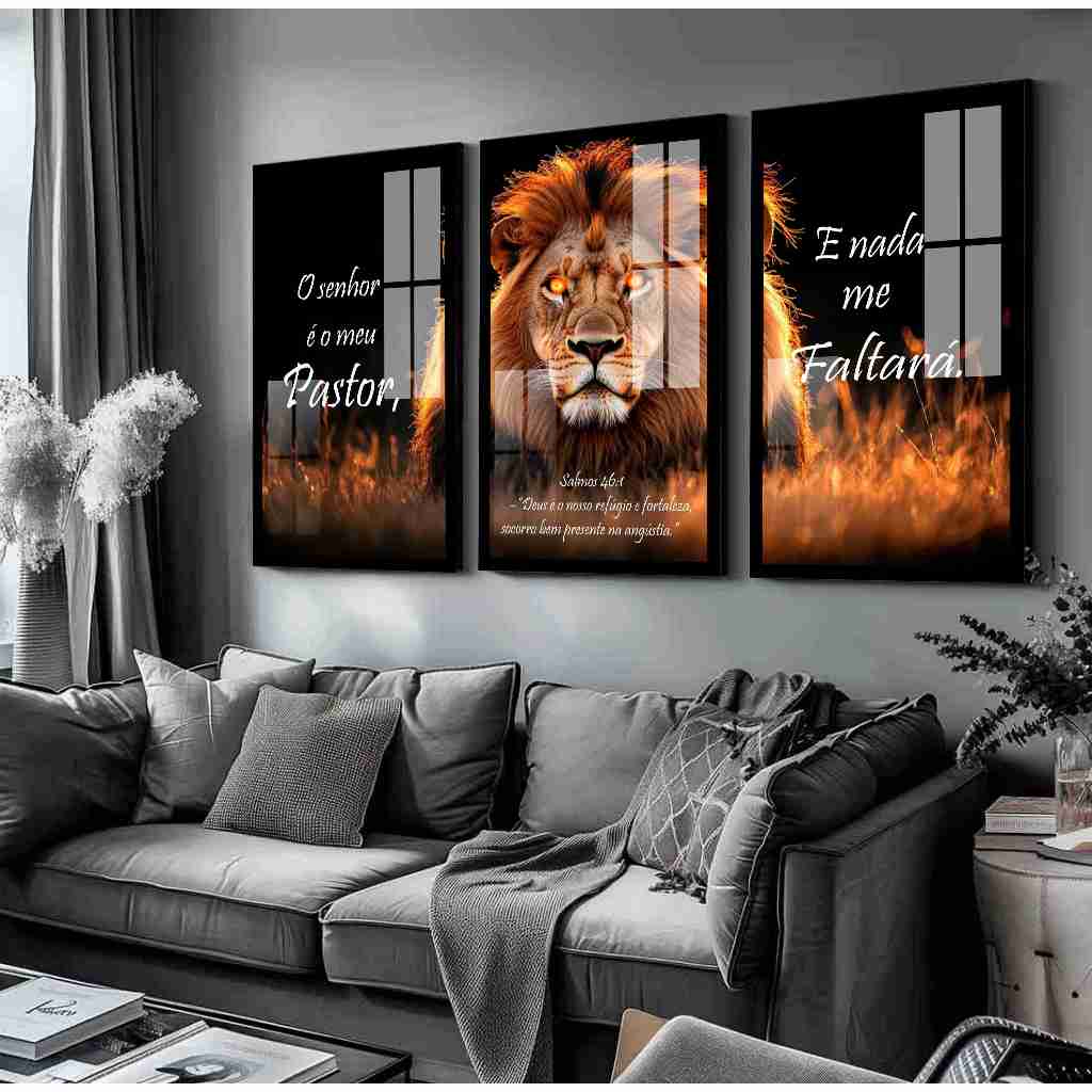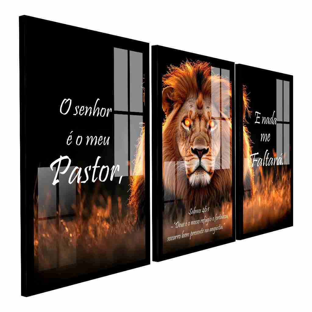 Quadro Decorativo Leão Tribo Judá Salmo O Senhor é o Meu Pastor Religioso Sala Quarto