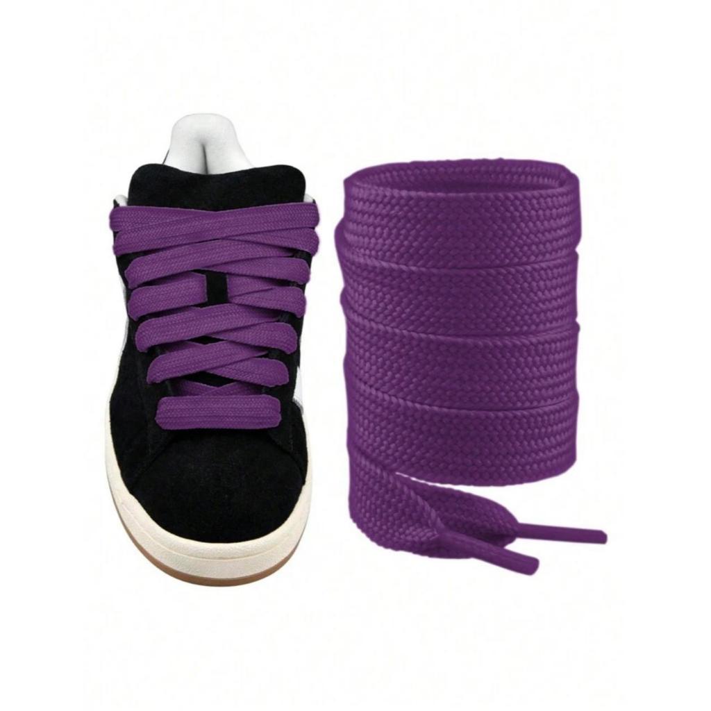 1 Par De Cadarço Chato Grosso BBoy Fat Lace 1,20 Cm Largura 17 mm Cores Preto Branco e Roxo