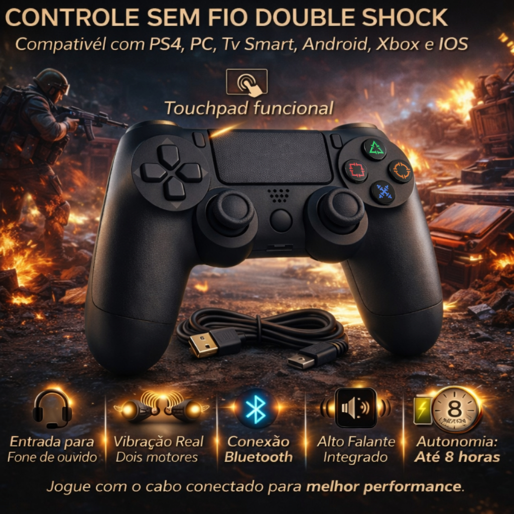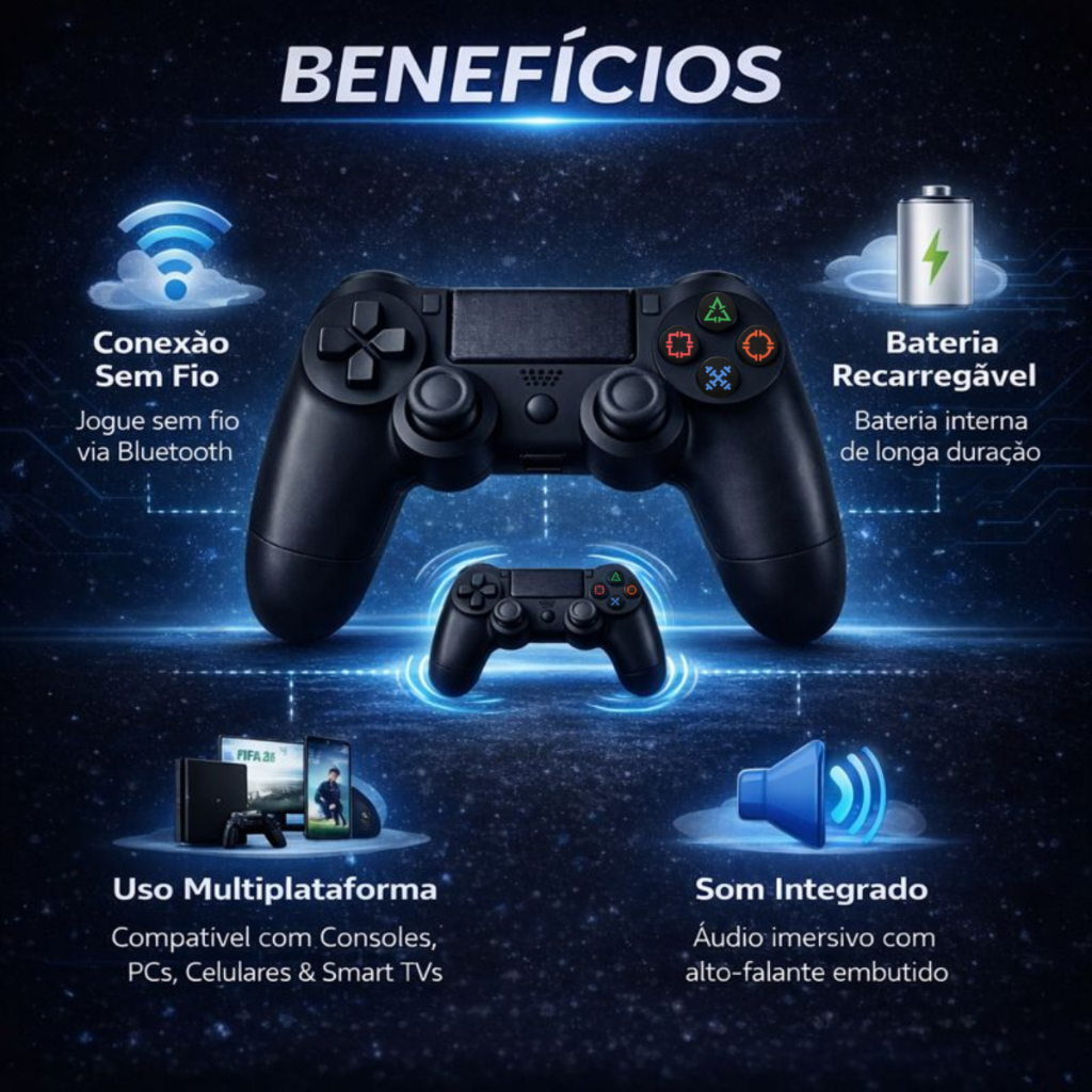 Controle Compatível Com Ps4 Pc Notebook Celular Bluetooth Sem fio Wireless